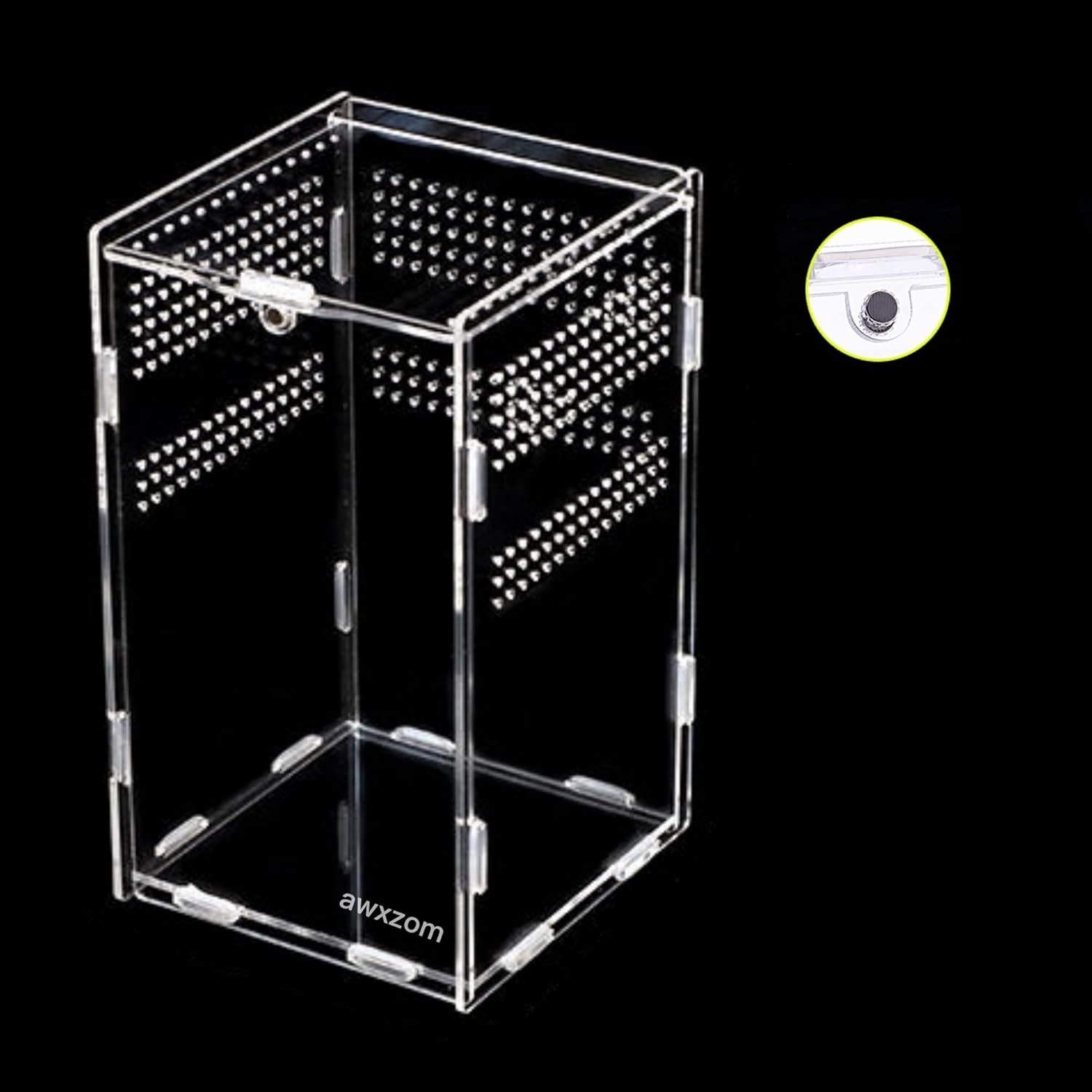 Magnetic Acrylic Case, micro habitat small Tarantula Enclosure enclosure for arboreal Tarantula Scorpion Sling Lizards Mantis Snake Gecko jumping spider snail Insect Isopods (4.7*4.7*7.8 inch)