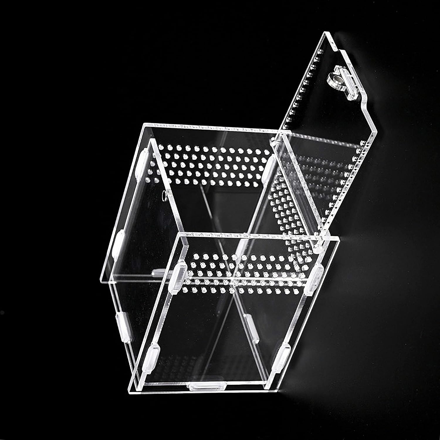 - 【Unique Design】Arboreal Acrylic reptile terrarium has about 500pcs 2mm vents, enough vents to ensure that animals will not suffocate when staying inside