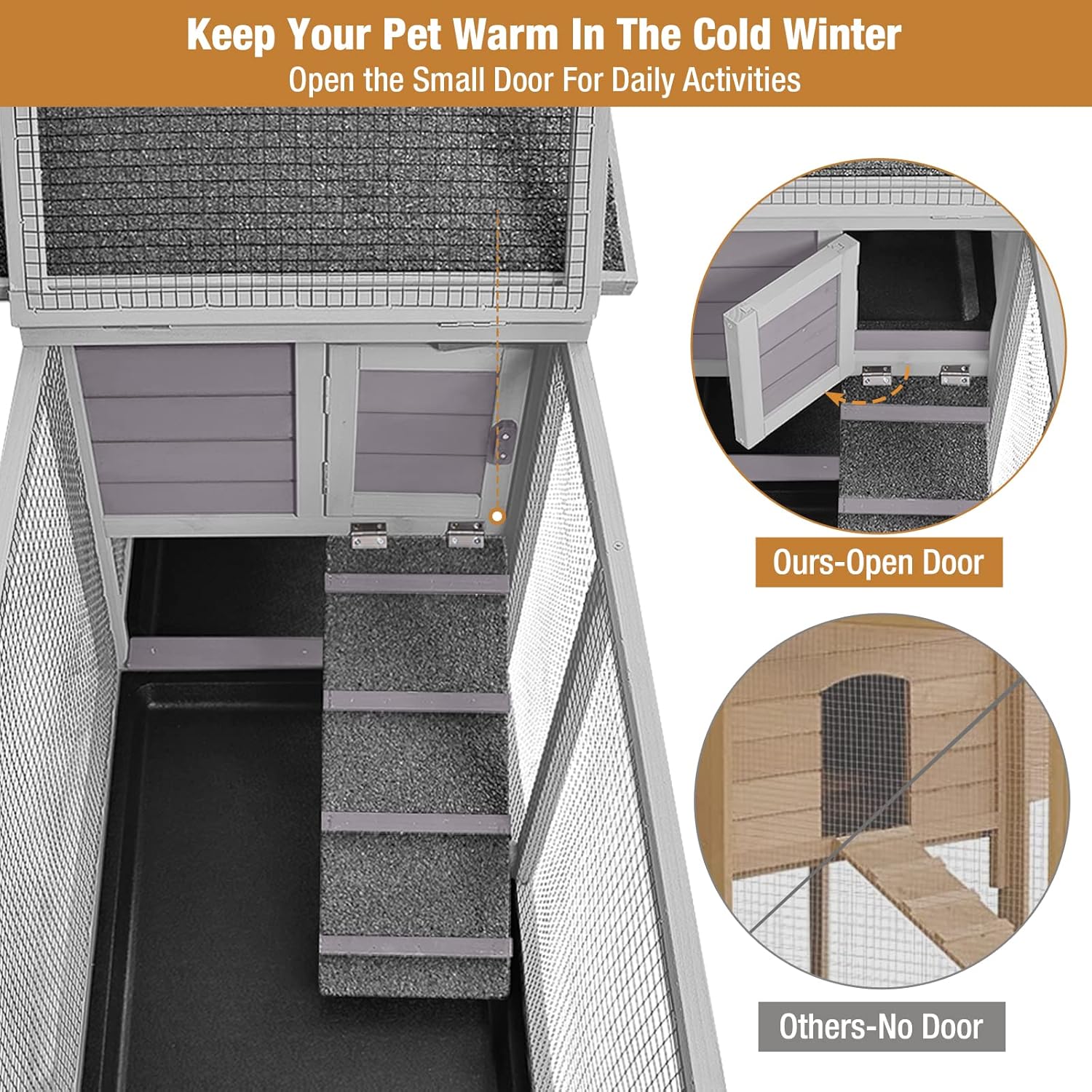 - 😊【14.6ft² Spacious Living Area】Rabbit hutch with two side run boxes,93.7" from end to end, provides a far and long distance to hop.