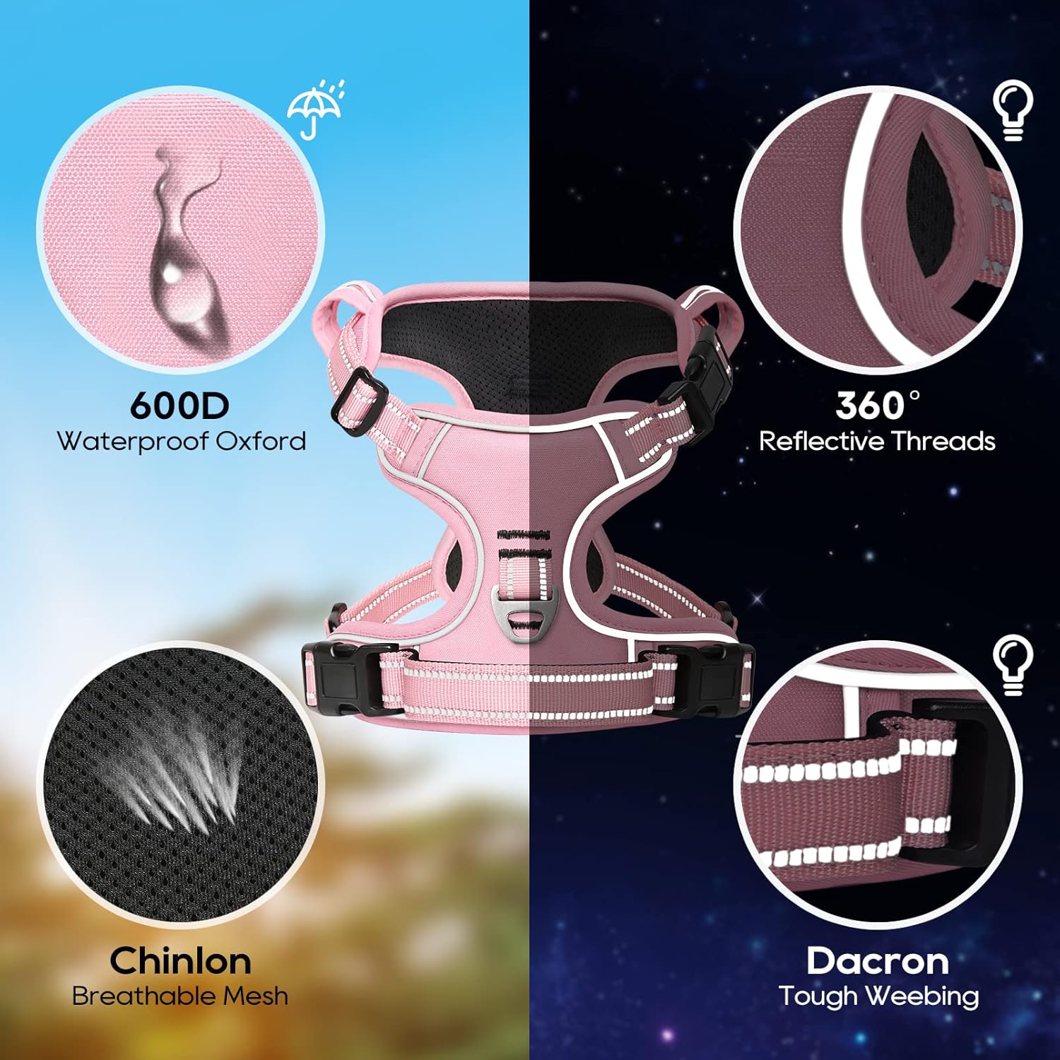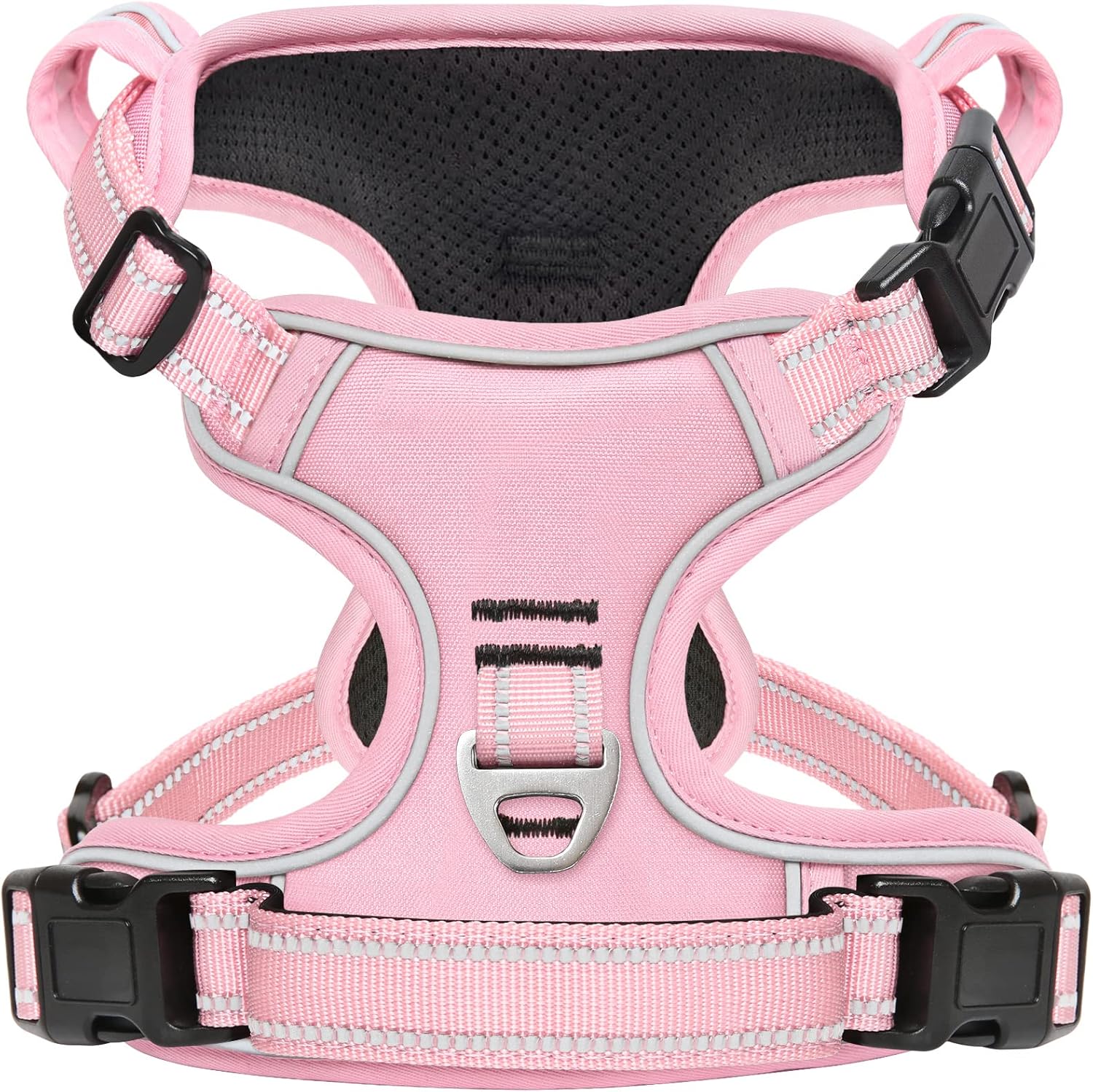Timos Dog Harness, 3 Snap Buckles No-Pull Soft Padded Dog Vest with 2 Metal Leash Clips, Adjustable Reflective No Choke Pet Harness with Easy Control Handle for Large Dogs,Pale Pink,L