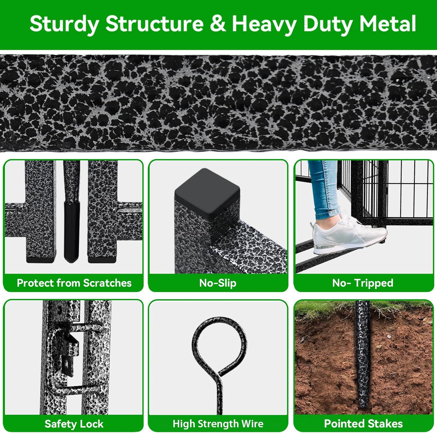 - 【Safe Enclosed & Expandable Area】The heavy-duty dog pen is sturdy and durable, pet fence provides a safe enclosed area for your pups play, run around and get the exercise they need, each panel is separate, which can be combined repeatedly for larger square footage, this temp fencing makes potty and house training much easier