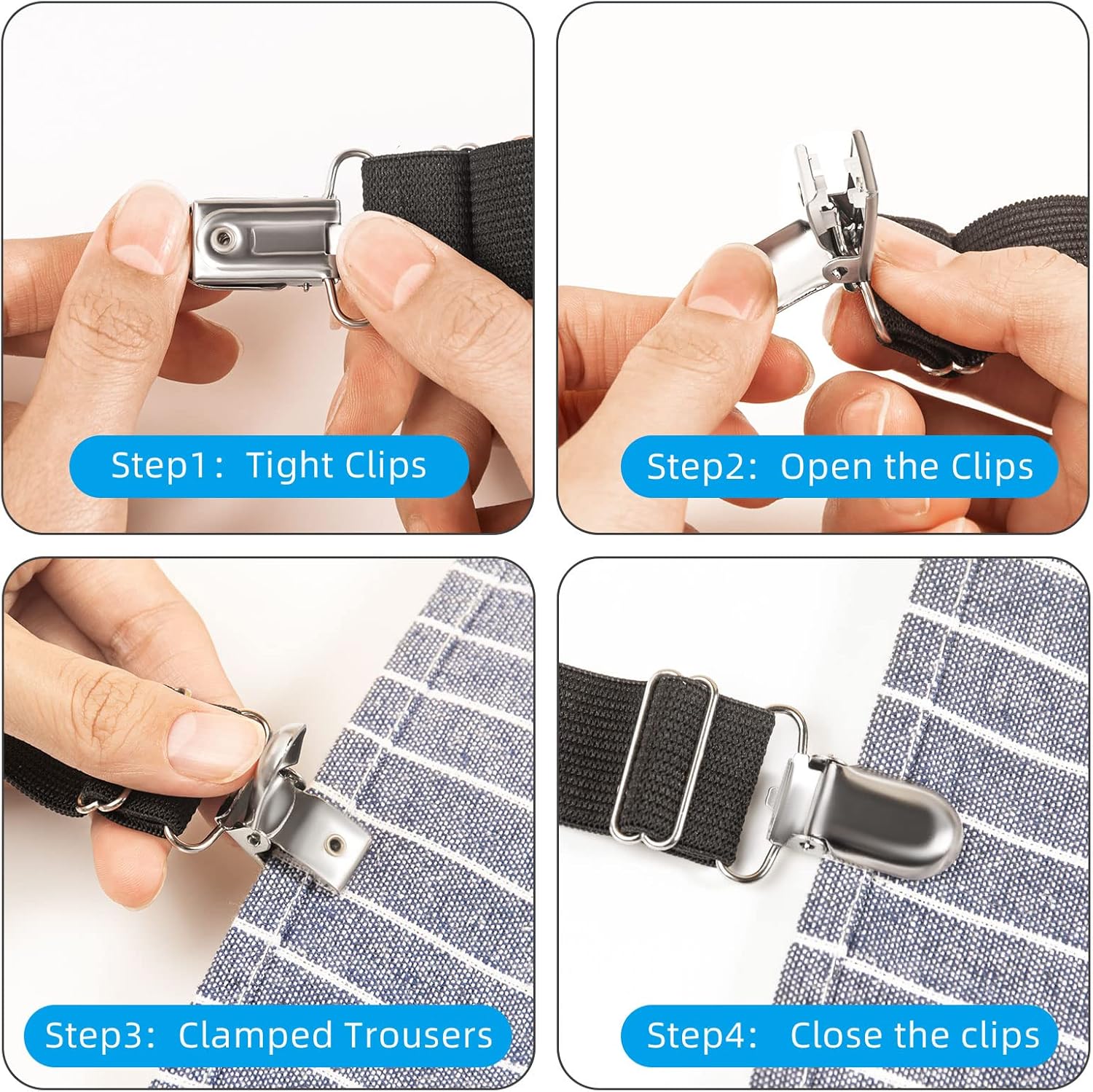 - Easy to use: Clips have plastic inserts to protect your clothing, ensure it won't damage your pants,it work as pant clips,which can keep your pants from blowing while you are riding, walking or motorcycles