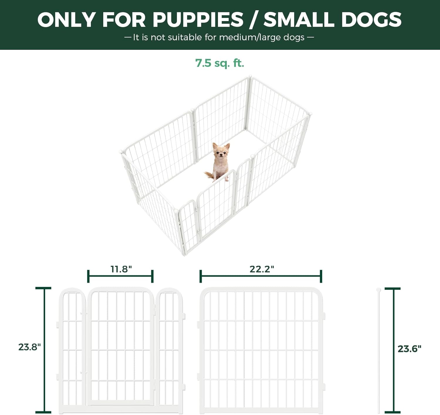 FXW Homeplus Unleashed Indoor Dog Playpen - Stress-Free and Safe Play, Heavy Duty 24 Inch 6 Wire Panels Dog Pen for Puppy and Small Dogs, White│Patented