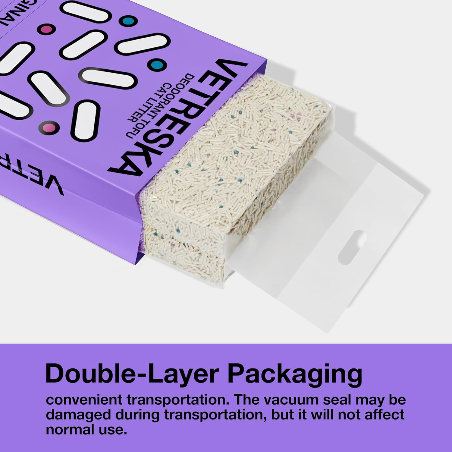 - 【Vacuum Packaging】 Our tidy cat litter is packaged in an inner vacuum package for secure transportation and easy storage. When you receive the package, it may initially appear solid like a brick, but simply open the inner bag and allow some air in. Within moments, the litter will loosen up and be ready for use