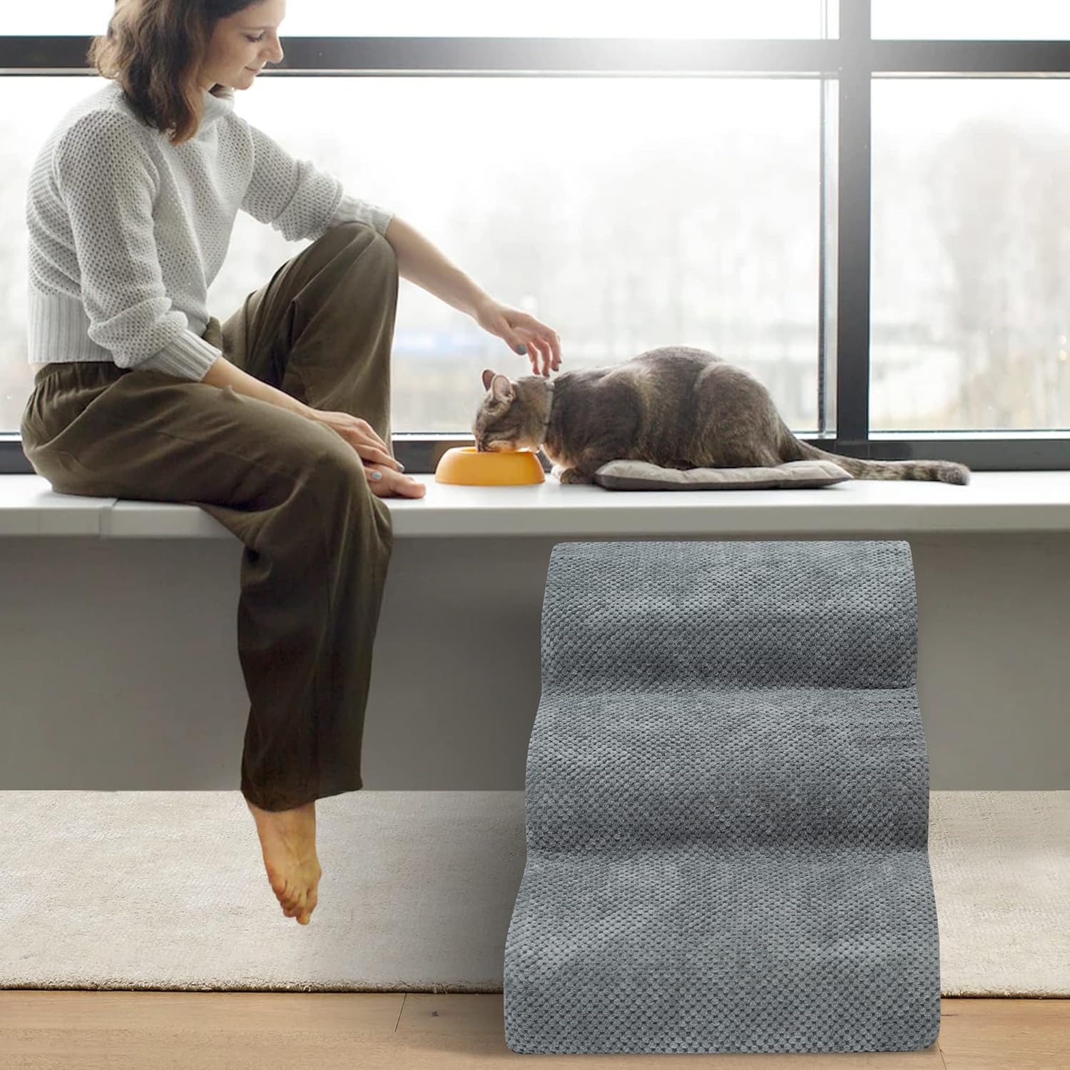 - Easy to Install and Clean: This pet step is 23.6 inches long, 16 inches wide and 15 inches high. It can be assembled and disassembled through simple steps. It is easy to clean. You can wash the removed cover by machine to keep the pet step clean and tidy