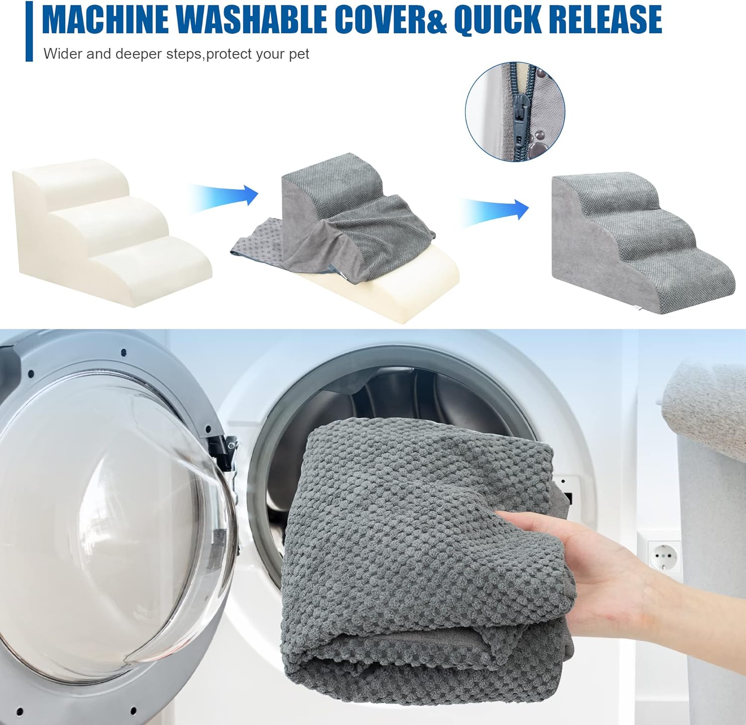 - Double Sided Anti Slip: The dog steps cover is made of corduroy with greater friction than other fabrics, which provides extra grip while in use, the bottom features nonslip rubber dots, preventing pets from sliding while climbing, providing pets with double safety protection