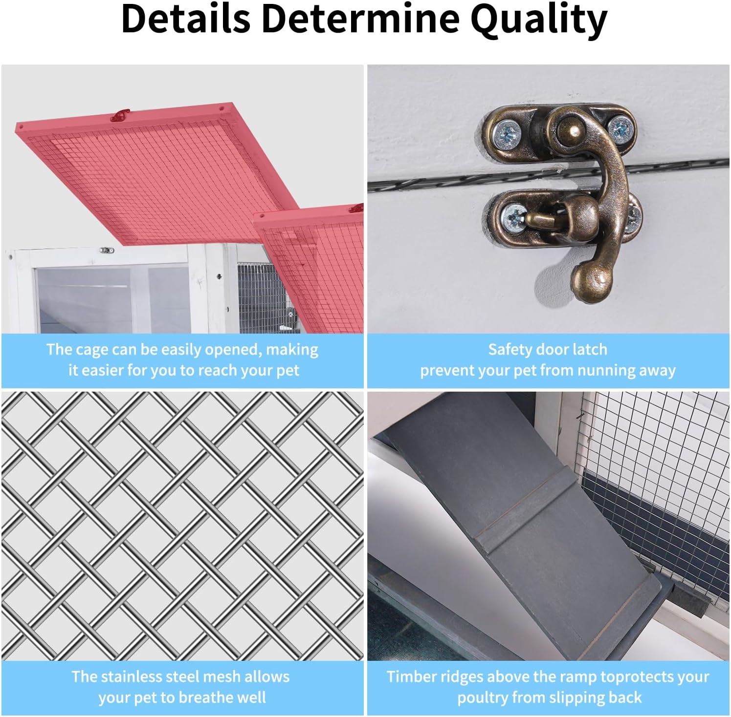 - 【Stable & Durable】100% made of 10mm Finnish spruce panels(NOT CEDAR), with a water-based painting finish, thicker than others guinea pig cages, ensures good sturdiness to use. The wire roof with UV proof panel protect your pets against the sun, rain and snow.