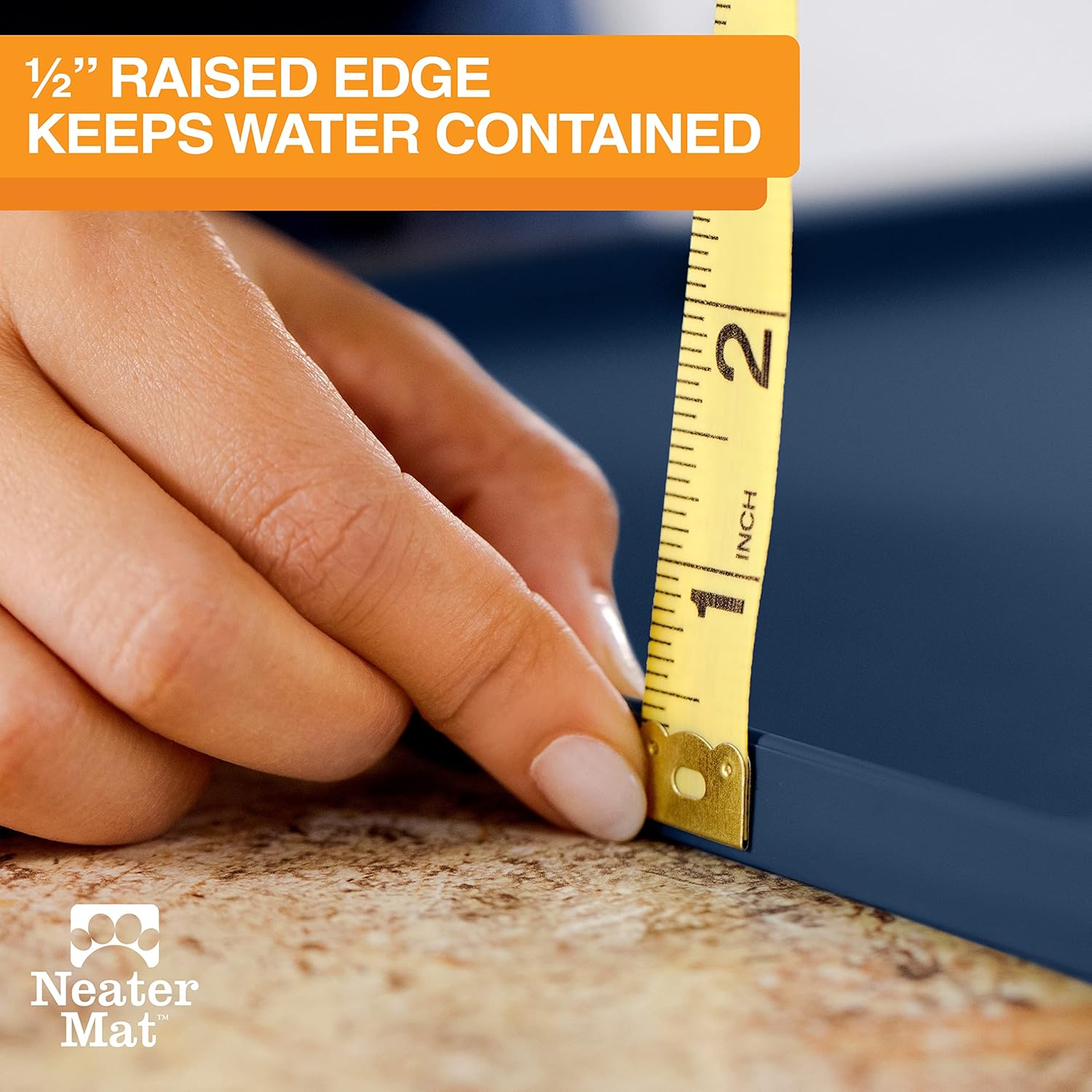 Neater Pet Brands Neater Mat Pet Mats for Food and Water, Cat & Dog Bowl Mat Waterproof Silicone, Feeding Tray, Dog Food Mats for Floors, Placemat w/Raised Edge for Under Bowls, 16” x 10”, Dark Blue