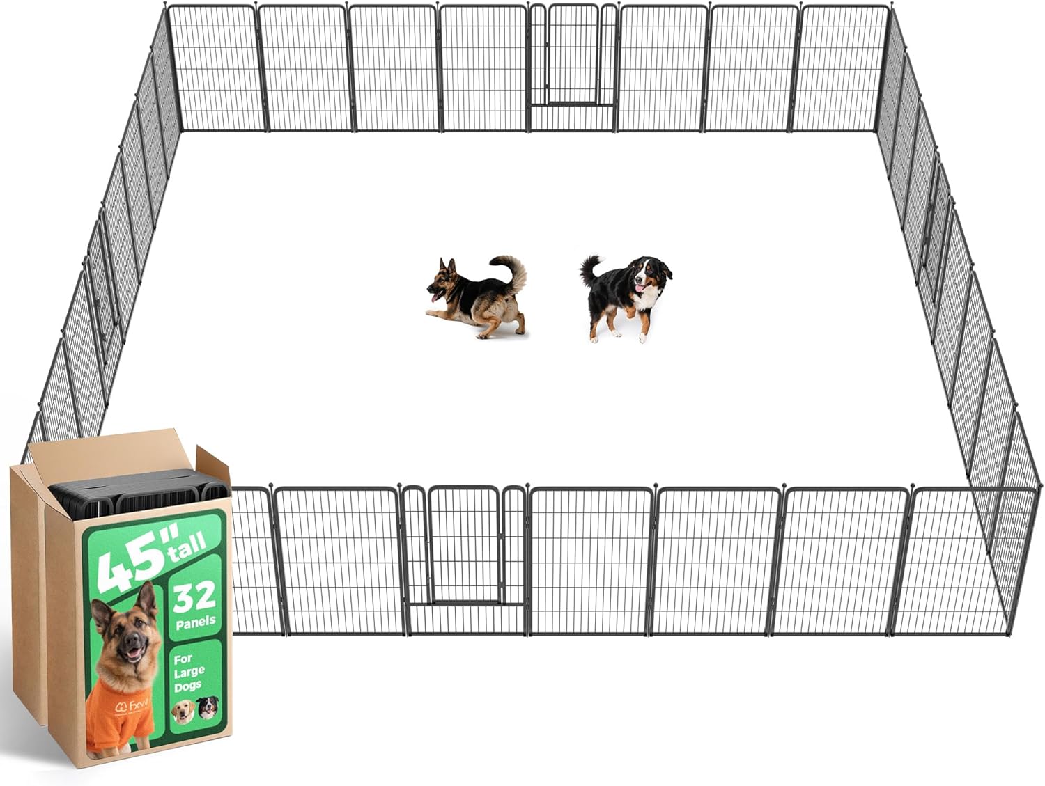 FXW Rollick Unleashed Dog Playpen for Indoor, Yard, RV Camping, 45 inch 32 Panels for Large Dogs, Black│Patented