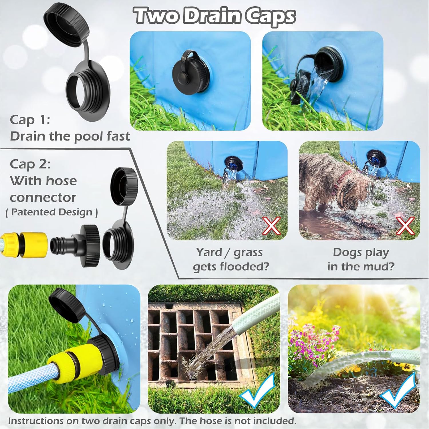 - Extra Hose Connector Included --- Do not want the yard/grass get flooded? Simply connect a garden hose and easy to drain.