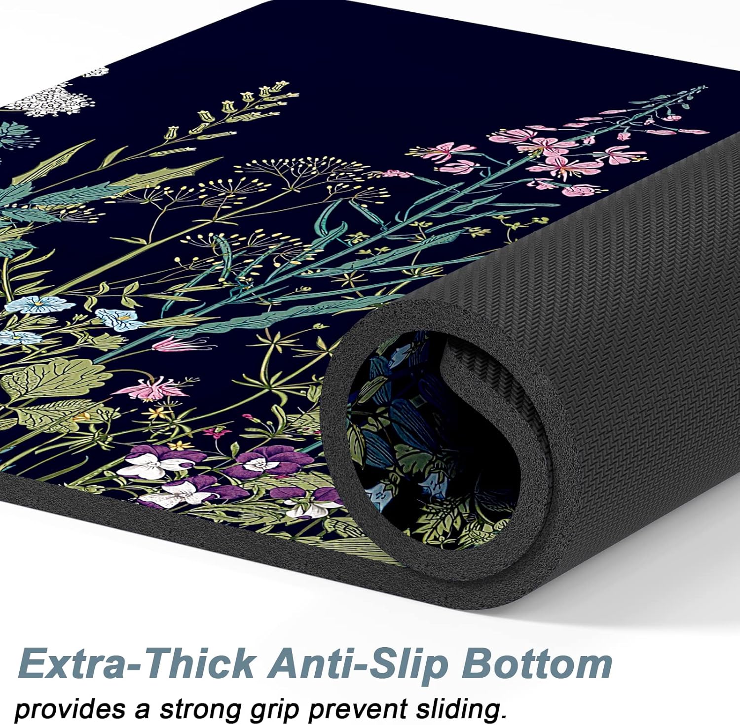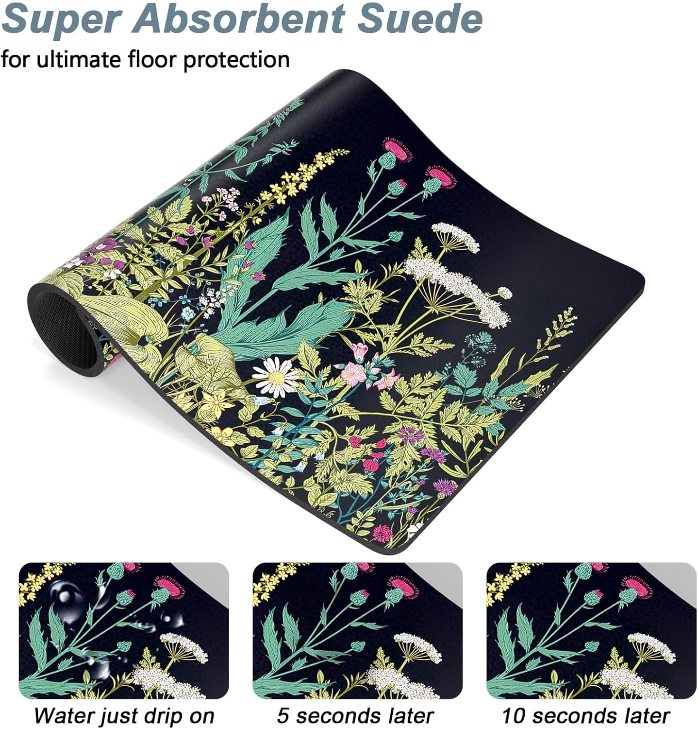 Rnivvi Dog Food Mat, 16" x 24" Flower Absorbent Dog Cat Bowl Mat for Food and Water, Cute Anti-Slip Rubber Pet Feeding Rug Protect Floors, Puppy Placemat for Feeding & Watering Supplies,Black Floral