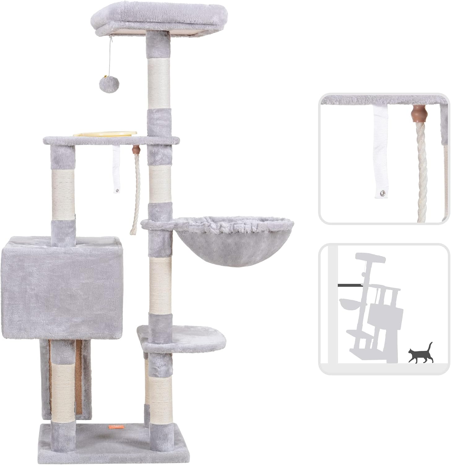 - Stability is the primary consideration for a cat tower: Reinforced cat climbing frame base, sisal wrapped scratch posts and Anti-toppling devices ensures the security of active kittens and cats playing on the activity center