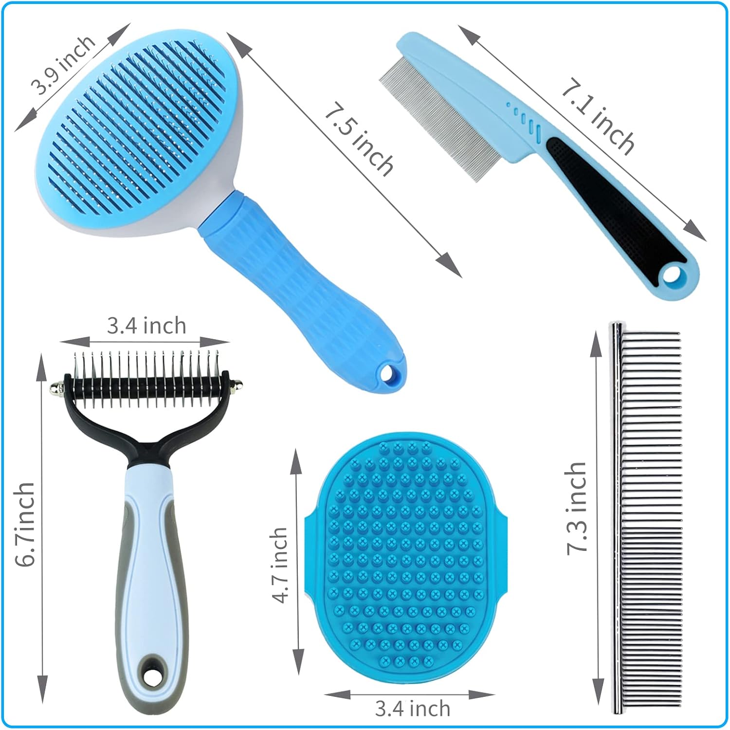 - 【FULL SET DOG/CAT BRUSH】 This full set of dog/cat grooming brushes includes every tool you need to fulfil daily care for pet hair removing, it should be a must for all the pets family, especially when the new puppy member joining! The kit is designed in blue sky style, making it to be a great present choice for you!
