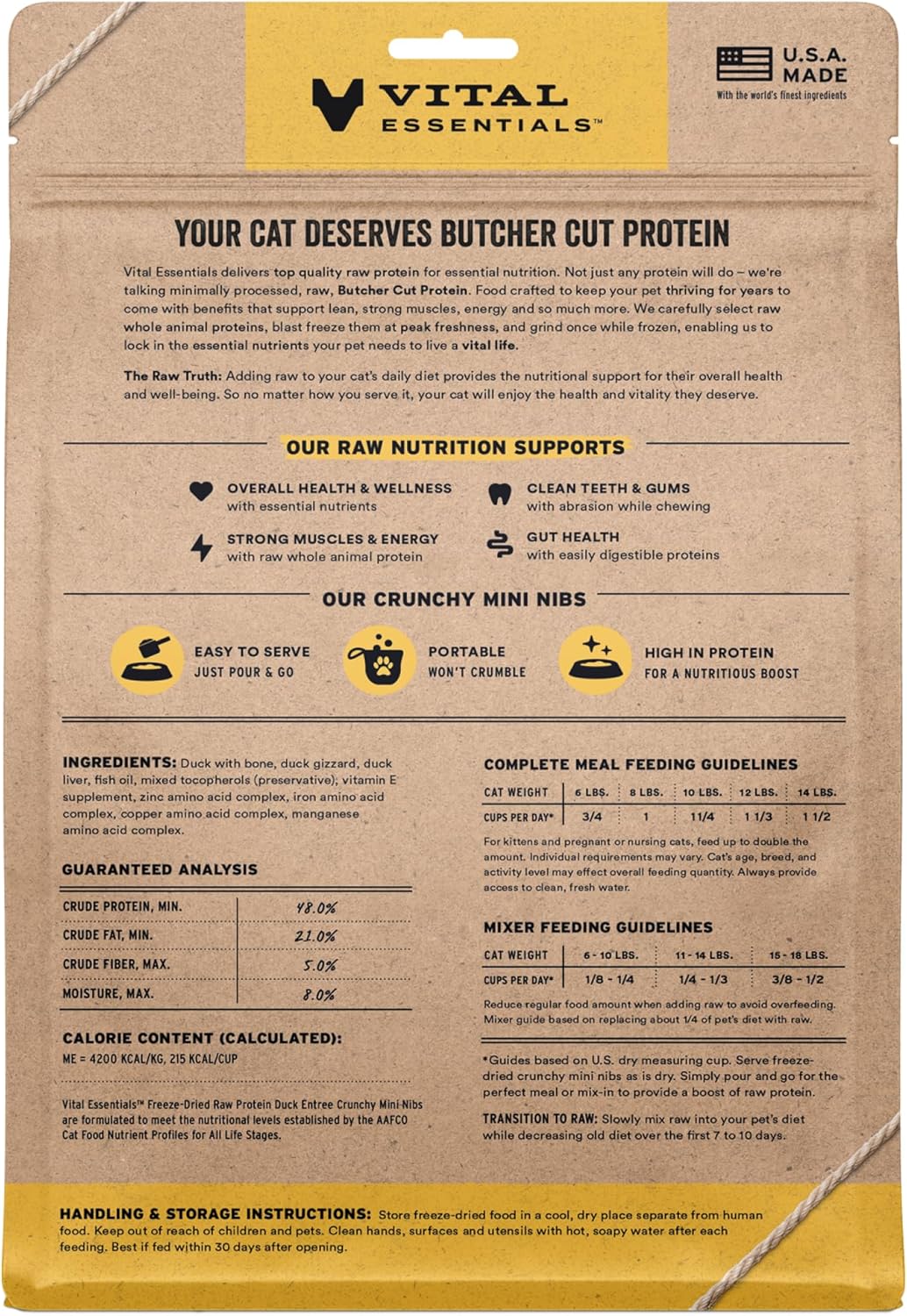 Vital Essentials Freeze-Dried Raw Duck Meal or Mixer Cat Food Crunchy Nibs, 12 oz
