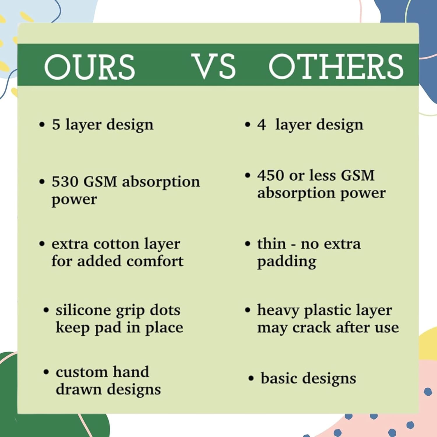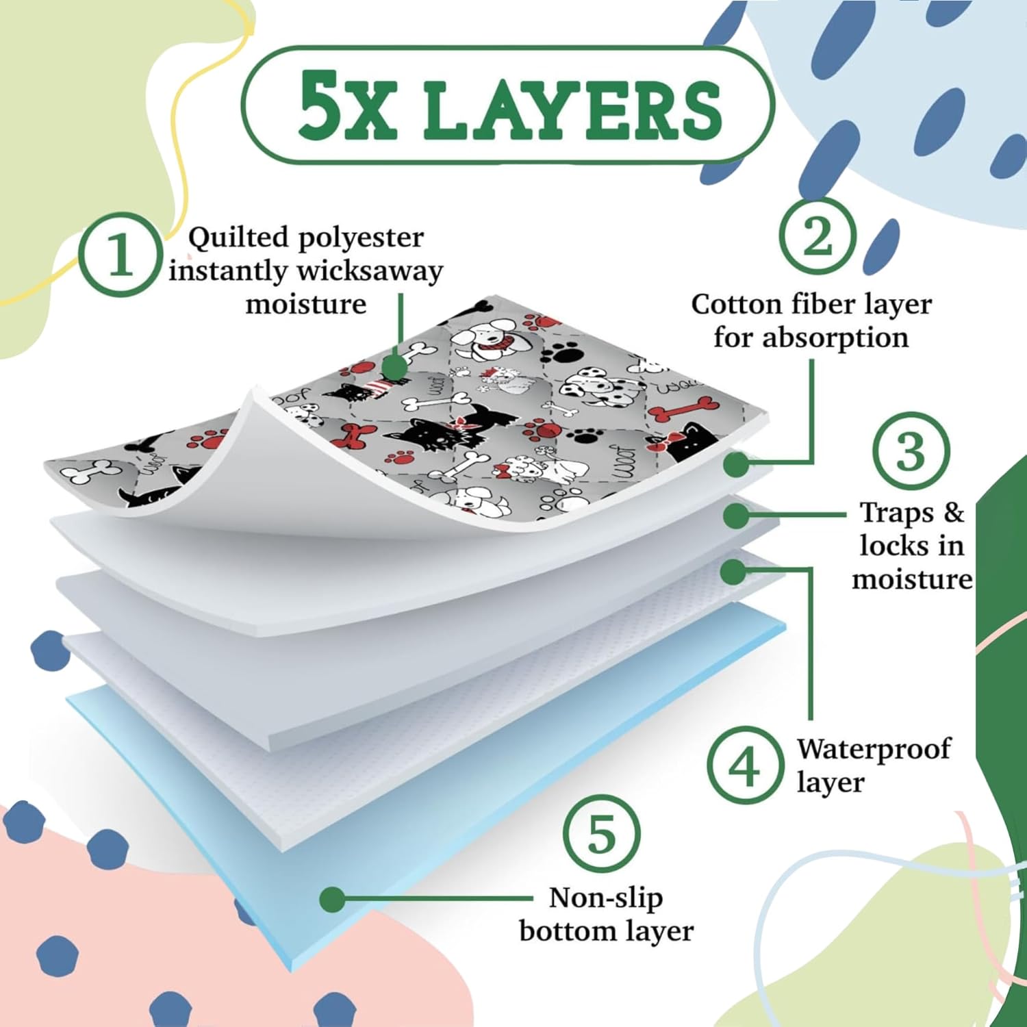 - Superior protection: Our dog washable pee pads feature a waterproof layer that prevents leaks, ensuring your floors stay dry and protected from accidents, making them perfect for training or everyday use.