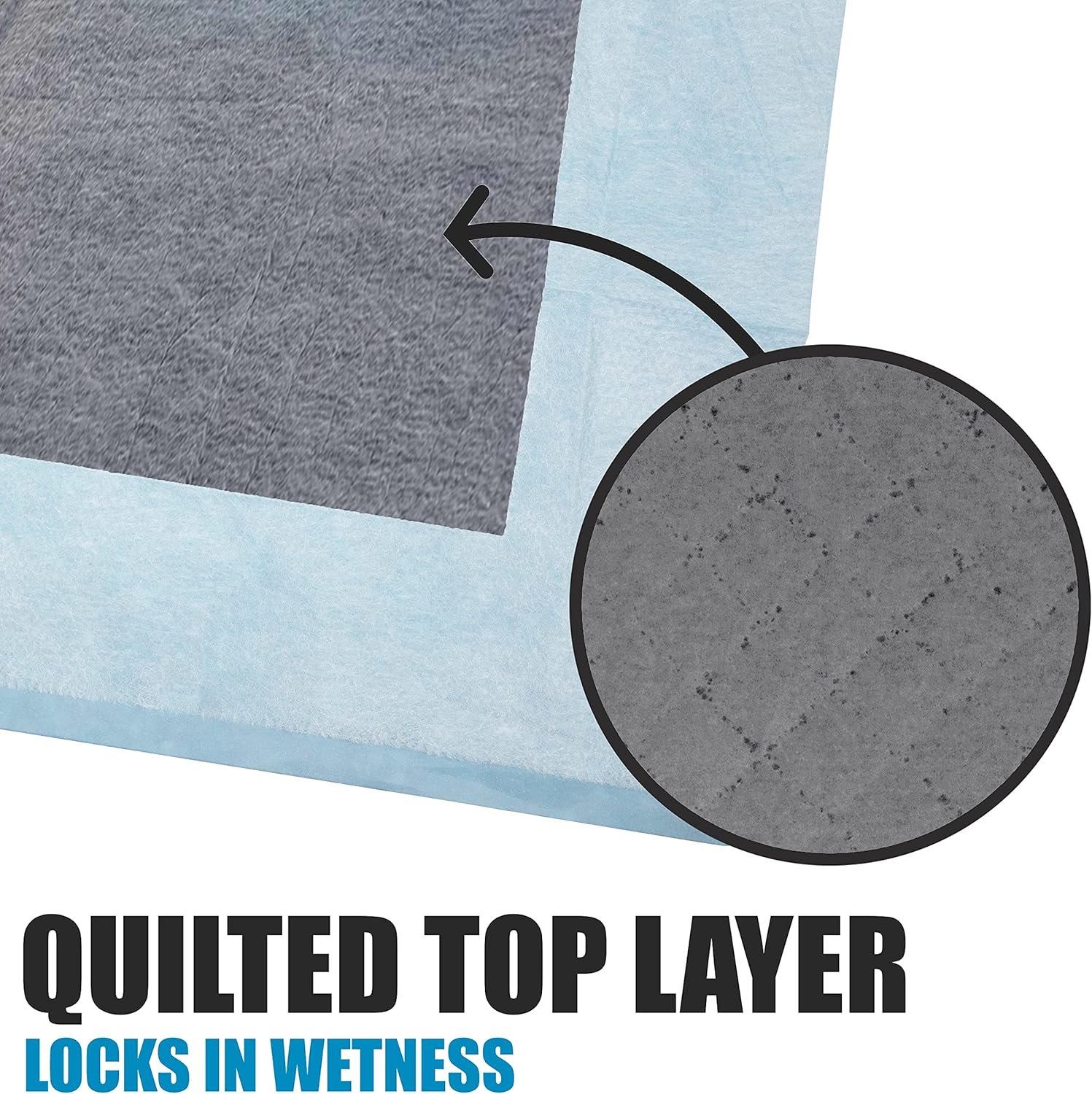 - LEAK-PROOF 6-LAYER DESIGN WITH ACTIVATED CHARCOAL: These dog pads feature a charcoal rapid dry sheet that quickly locks in moisture and neutralizes odors. Combined with a waterproof liner, the multi-layer system prevents leaks and keeps your home clean and fresh.