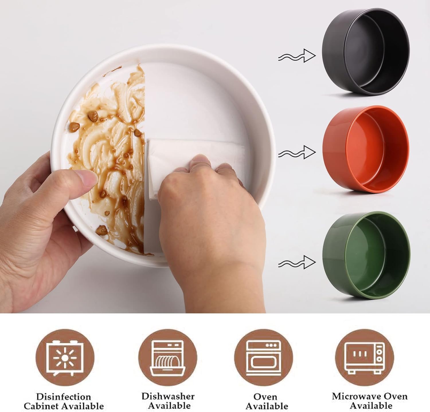 - Easy to Clean and Microwave Safe Ceramic Material - Cute dogs cats bowl with WOOD STAND design matches the home decorations. Ceramic bowl is made of Porcelain, this cat dog food water bowls are free of lead and cadmium. High temperature ceramic, non-toxic harmless, no smell,durable.Clean sanitation, be helpful for pet health. conveniently dishwasher Microwave safe so this ceramic food bowl can be easily cleaned. No Fuss.
