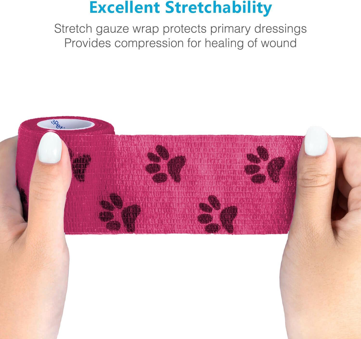 - [SELF-ADHESIVE]: WePet wrap ONYL sticks to itself but NOT to fur making it pain-free to pull off. Please be aware that this type of wrap is ALMOST NON-ADHESIVE when it sticks to other surfaces like fur and skin. So, you also don't need to worry about any adhesive residue. It’s very easy to tear by hand.