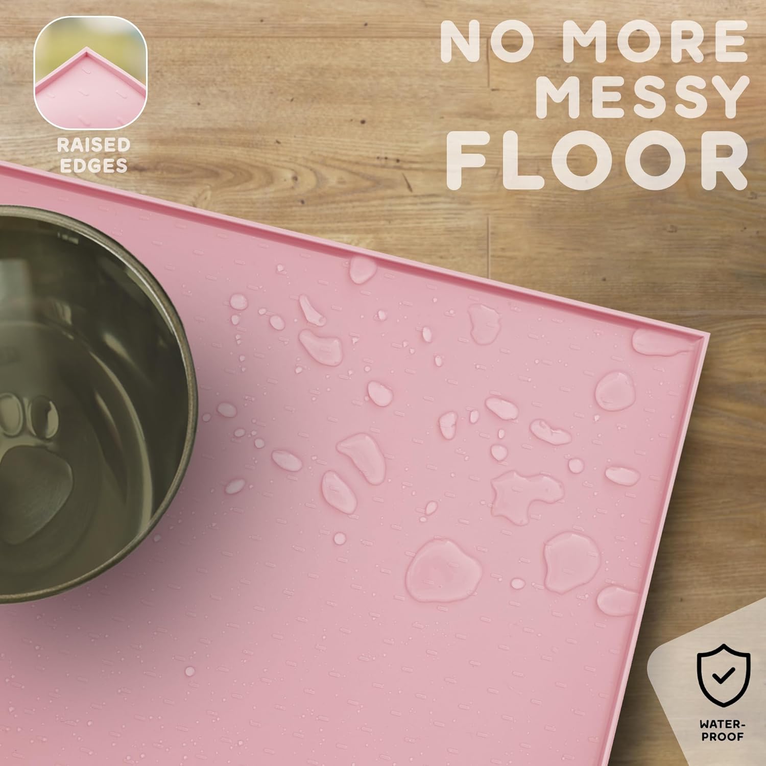 Dog Food Mat - 28x18 Raised Edges Dogs Mat for Food and Water Prevent Spill, Waterproof Cat Food Mats Protect Floors, Easy Clean Dog Bowl Mats for Food and Water, Silicone Pet Feeding Placemats Pink