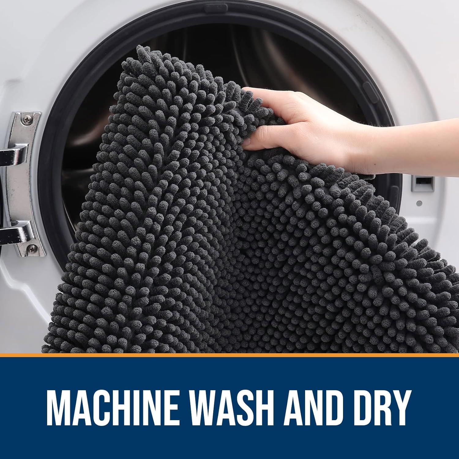 OLANLY Dog Door Mat for Muddy Paws 70x24, Absorbs Moisture and Dirt, Absorbent Non-Slip Washable Doormat, Quick Dry Chenille Mud Mat for Dogs, Entry Indoor Entryway Carpet for Inside Floor, Dark Grey