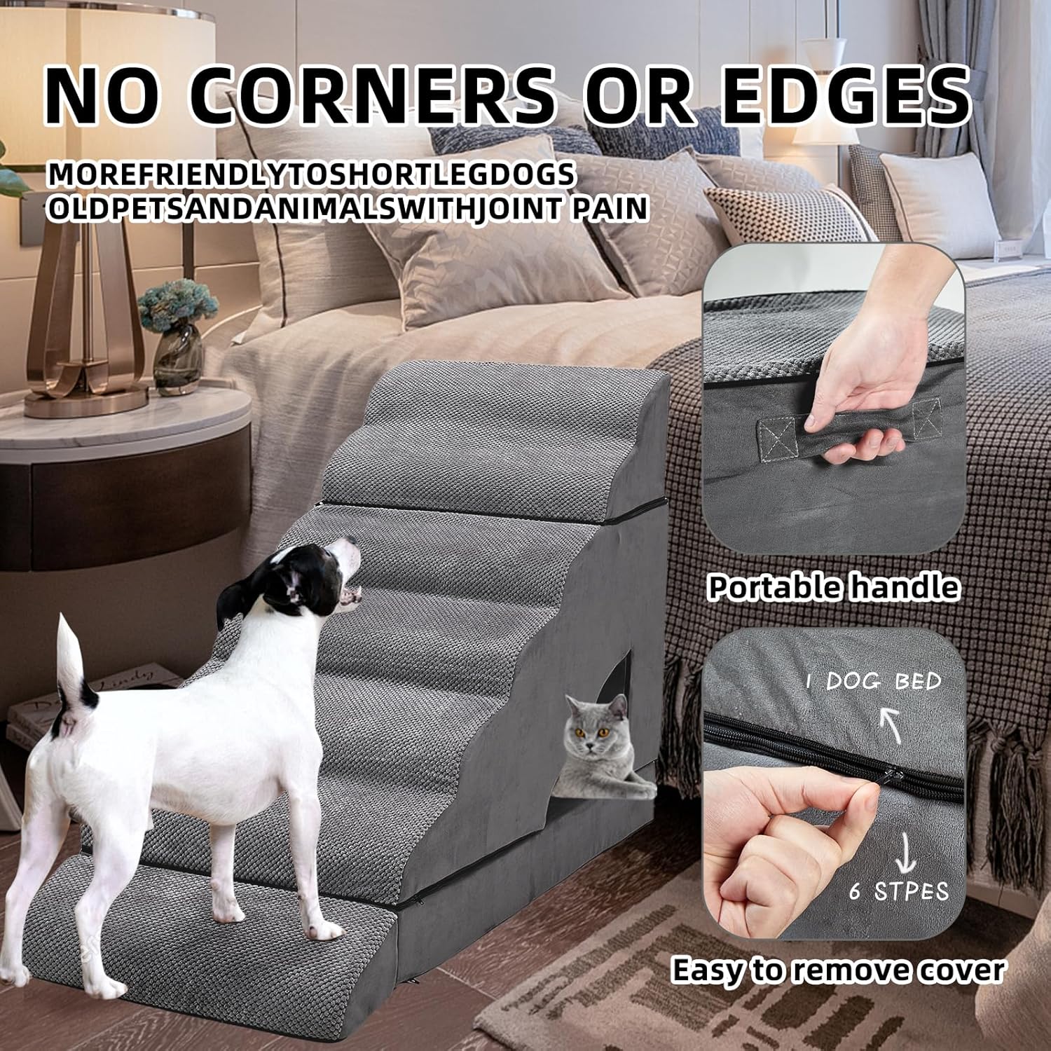 - [Special Notice]: Our dog stairs is packed in a vacuum compression package,please make sure to open all packages before use, let the sponge come in contact with the air, and it takes time to rebound after opening. please patiently wait for 24-48 hours until it has fully rebounded to normal shape. If you encounter any problems during the use, please feel free to contact us
