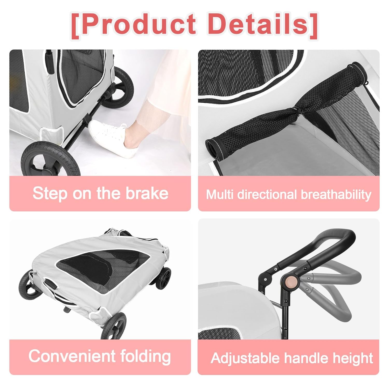 Large Dog Travel Stroller with 4 Heavy Duty Wheels Pet Stroller with Adjustable Handle - Double Doggie Capacity Jogger Wagon with Back Front Door for Small Medium Large Dogs (Grey)