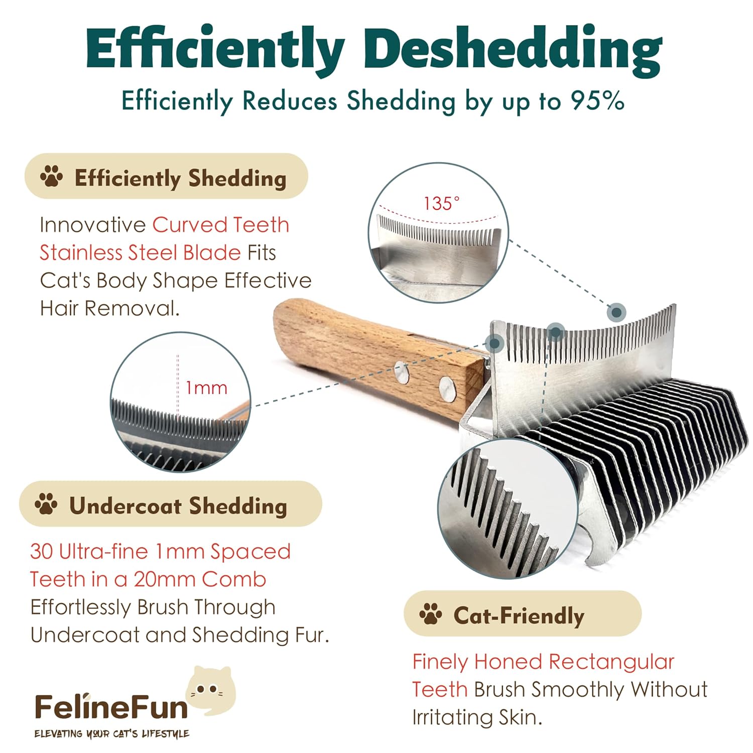 - ใ๐๐ผ๐บ๐ณ๐ผ๐ฟ๐๐ฎ๐ฏ๐น๐ฒ ๐๐ฟ๐ผ๐ผ๐บ๐ถ๐ป๐ด ๐๐ ๐ฝ๐ฒ๐ฟ๐ถ๐ฒ๐ป๐ฐ๐ฒใRounded Ends make it Safer on Sensitive Skin, Functioning as an Effective Undercoat Brush. The Anti-Slip High-Qulity Wooden Grip Guarantees a Comfortable and Relaxing Brushing Experience for Both you and your Feline Companion.