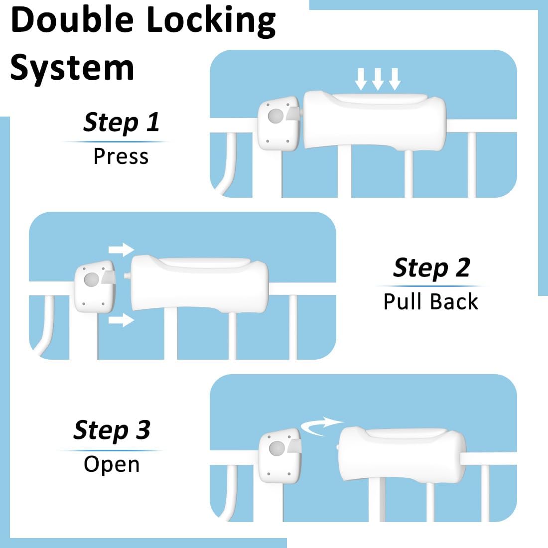 - Safety gate for baby - Designed with your child's safety in mind, this baby gate features a sturdy construction, thick steels and reliable locking mechanism. Our baby gates effectively keeps your child safe from hazardous areas while allowing you peace of mind as they explore their surroundings