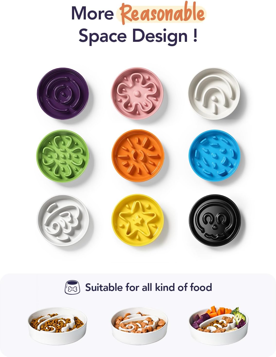 - Premium Ceramic, Durable and Stable: We use premium ceramic, not easy to damage, so your dog could enjoy his food safely and healthily. It is sturdy and heavy enough to be more stable. However, if your dog is using a slow feeder bowl for the first time, we recommend starting with a silicone bowl to help them get used to it.