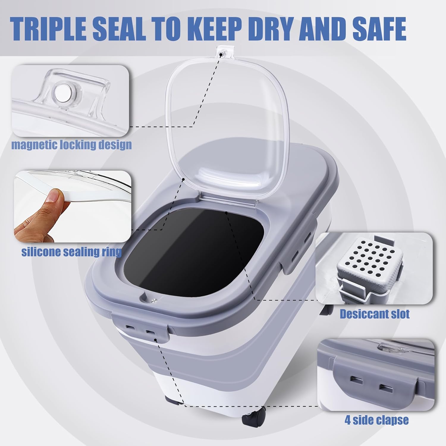 - 🐱【Sealed Preservation】 Four side lock covers, double silicone washers, and magnetic locks, they create an impenetrable barrier against moisture. Say goodbye to soggy foods! But we didn’t stop there. We’ve also included a desiccant card slot on the inside of the lid, you can add an extra desiccant. The container will not only keep your food fresh, but they’ll also put you in a great mood every time you step into the kitchen!