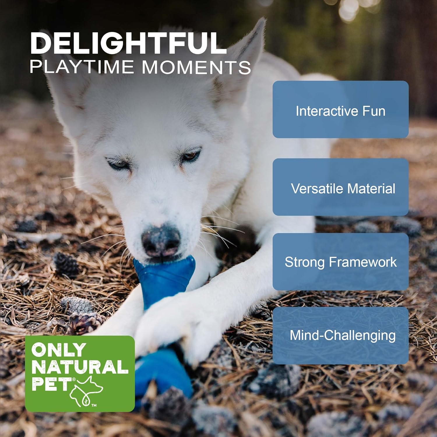 Only Natural Pet Rubber Boredom Buster Treat Stuffer Dog Toys - Interactive Stuffable Feeder Dispenser Fillable Durable Play Puppy Medium Large XS Chew Pup Hide Holder Easy Refill -BobbleBone/DarkBlue