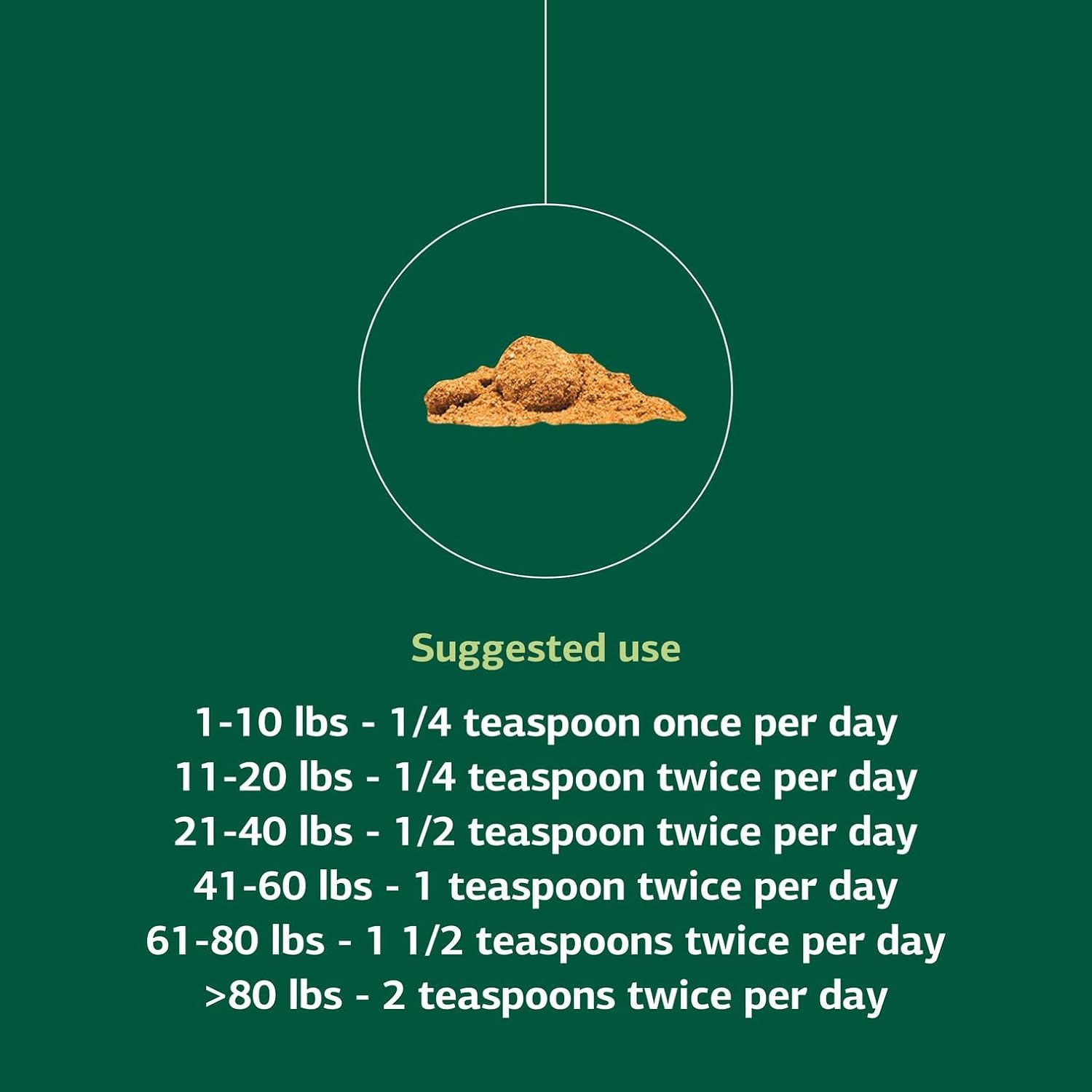 - Supplement Measurement & Dosing: Includes a 1/8 teaspoon scoop for small bottles and a 1/2 teaspoon scoop for large bottles for an accurate dosage based on your dog's weight