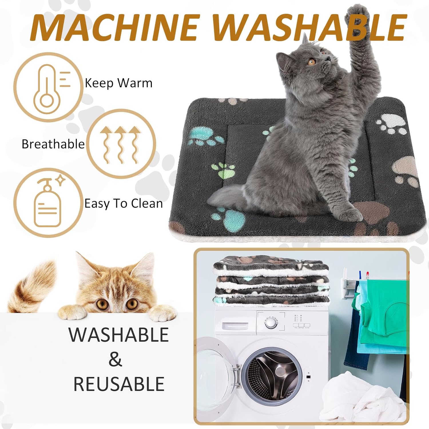- Cute Design: these soft washable dog mats are designed with paw pattern in same colors, cute and adorable, bright and colorful, which will add some beauty to your dog crates and kennels