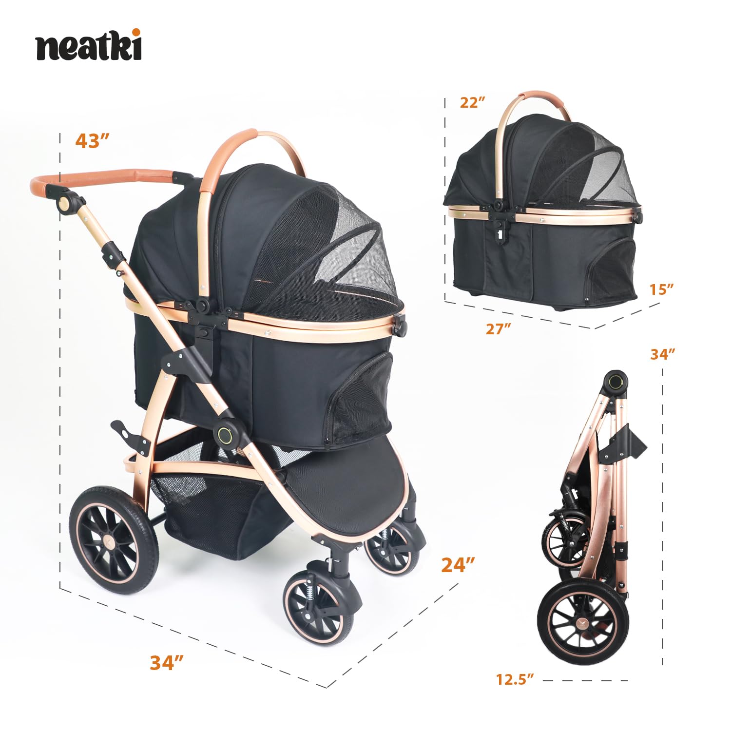- Multi-Functional Design โ Effortlessly switch between a pet stroller, carrier, and a car seat for ultimate versatility. This dog and cat stroller with a removable carrier enhances every adventure for daily walks or convenient travel.