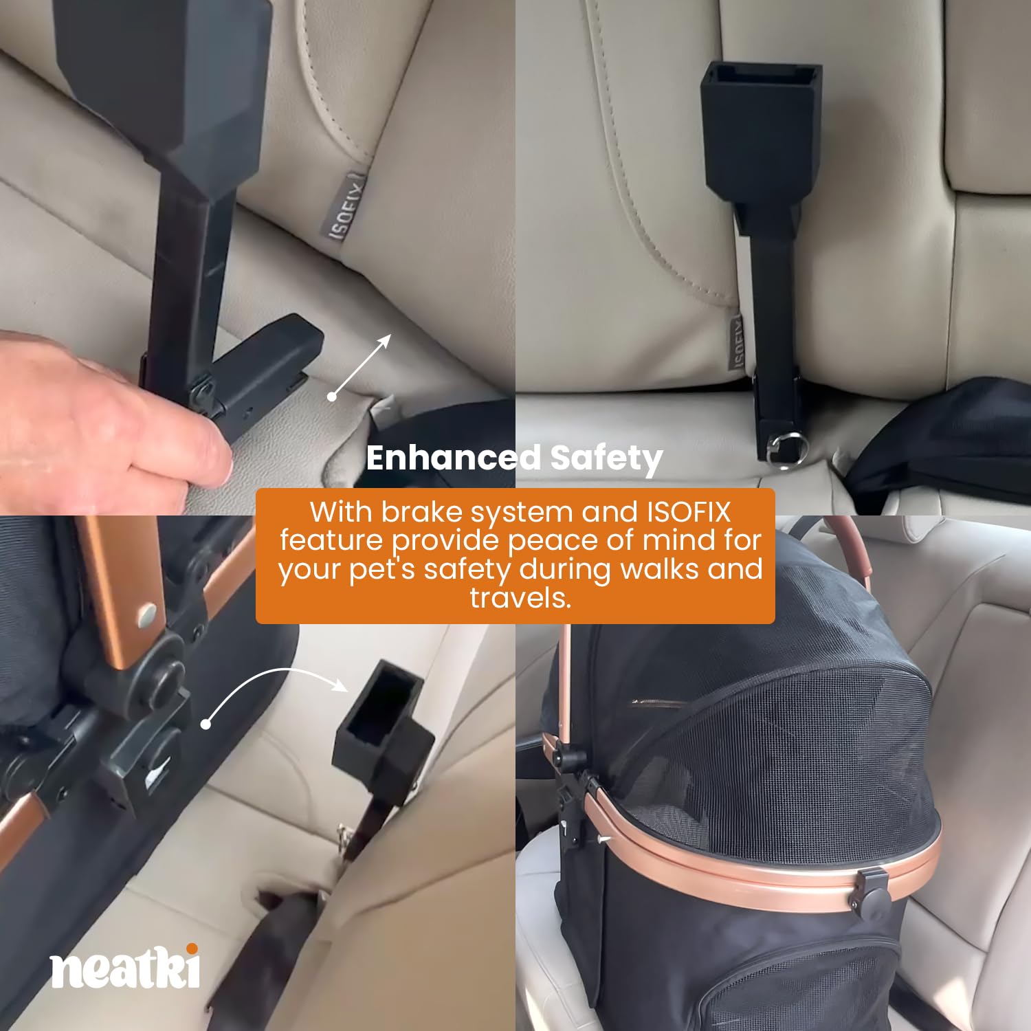 - Enhanced Safety โ Equipped with a reliable brake system, this stroller keeps your pet secure and gives you peace of mind during walks and outings. Now featuring ISOFIX for easy vehicle installation, ensuring a safer, stress-free travels with your furry friend.