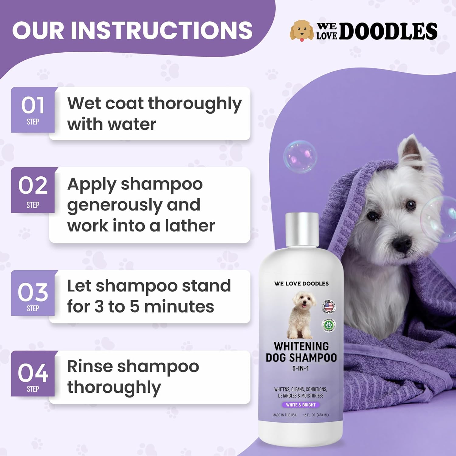 Whitening Dog Shampoo | Made in USA | Brightening Dogs Fur | White & Bright Hair | Removes Stains & Discoloration [We Love Doodles]