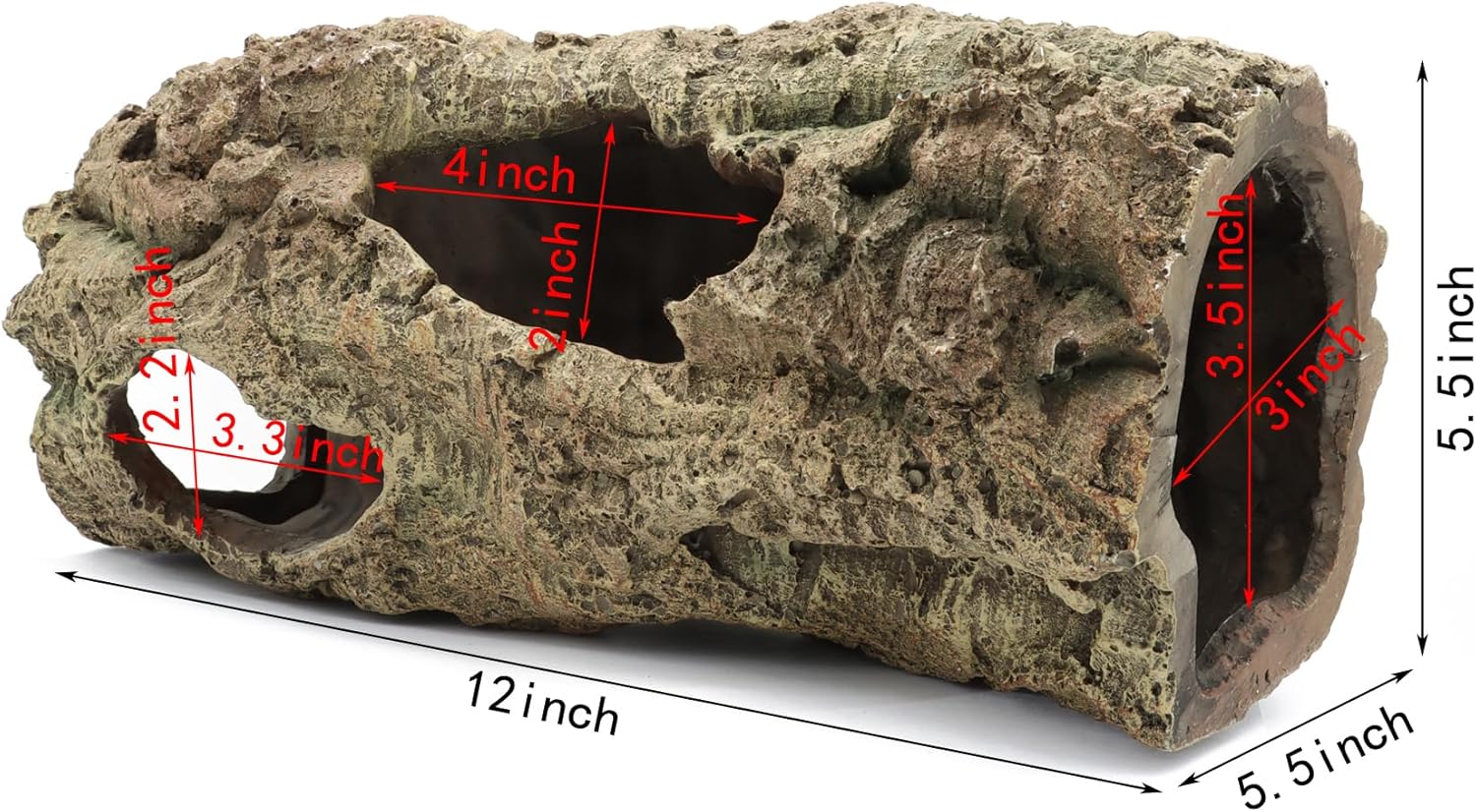 Reptile Terrarium Hideout Decor, Resin Wood Hide Decor for Reptiles, Fish, Amphibians, Small Animals (Large)