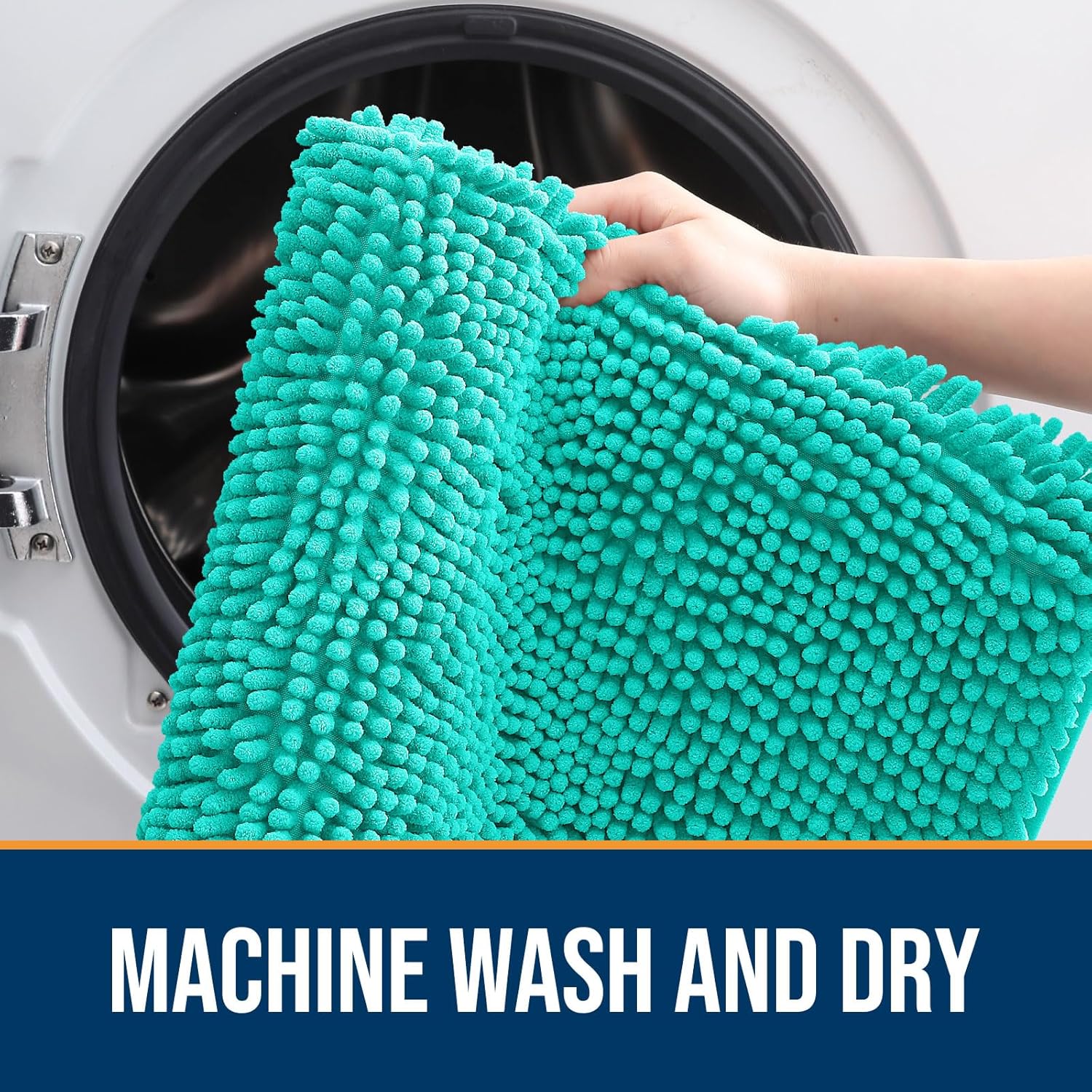 OLANLY Dog Door Mat for Muddy Paws 36x24, Absorbs Moisture and Dirt, Absorbent Non-Slip Washable Doormat, Quick Dry Chenille Mud Mat for Dogs, Entry Indoor Entryway Carpet for Inside Floor, Teal