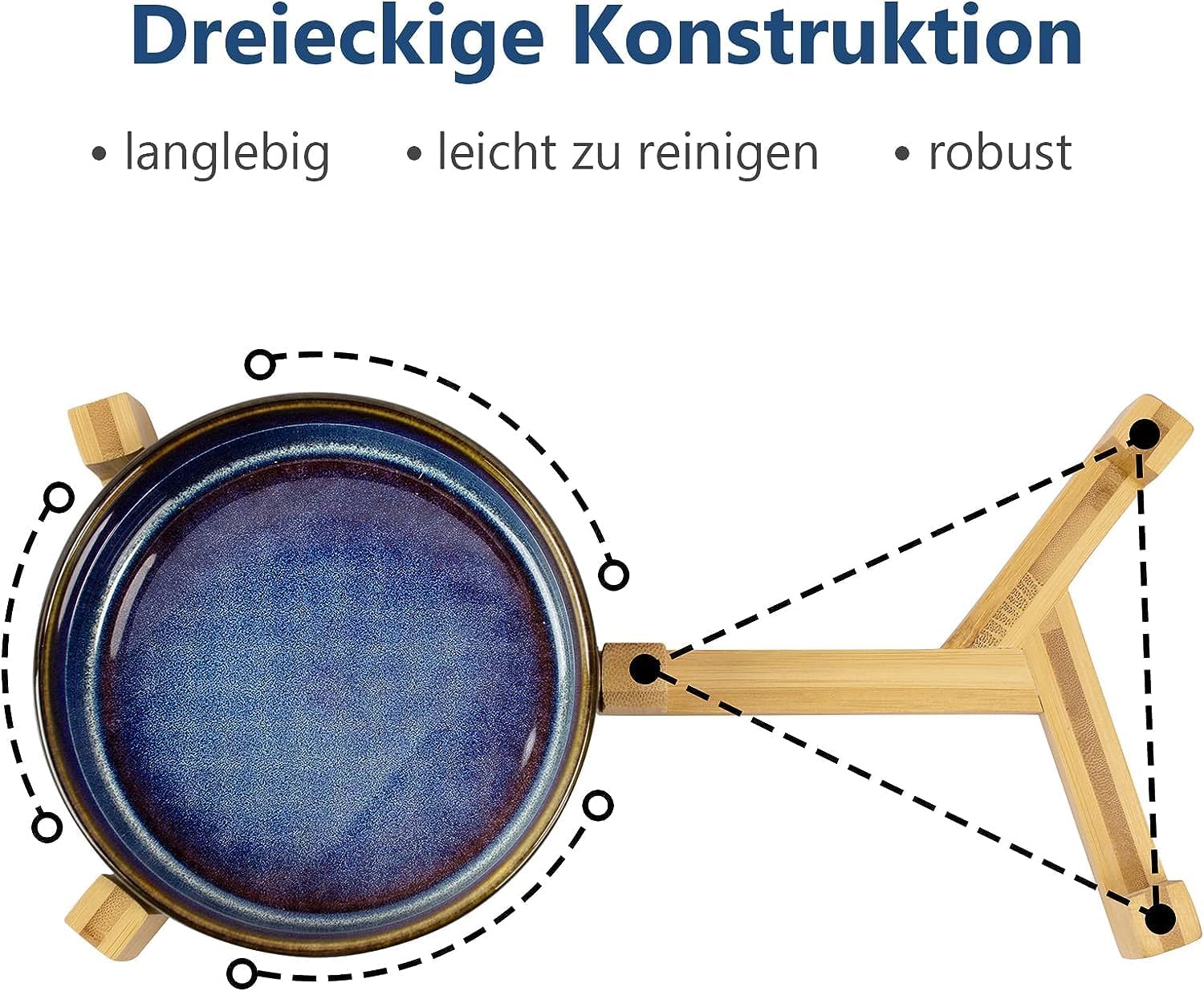 SPUNKYJUNKY Ceramic Dog and Cat Bowl Set with Wooden Stand, Modern Cute Weighted Food Water Set for Small Size Dogs (13.5OZ) & Medium Sized Dogs (28.7OZ) & Cats (3.6 Cups, 2 × Starry Blue)