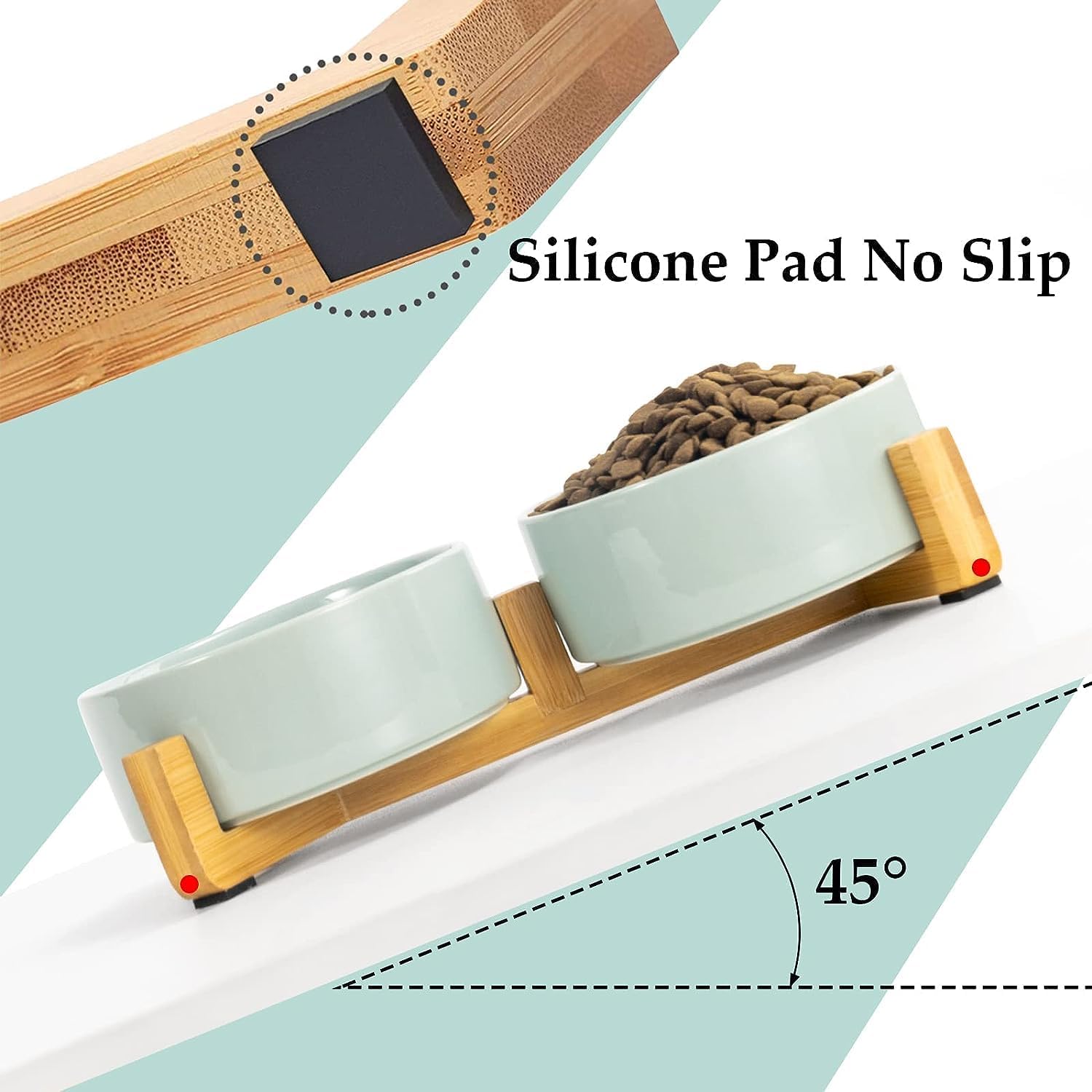 - [Natural Wooden Stand]:Unique wooden stand can effectively prevent food from spilling and keep the floor clean and tidy. Non-Slip bowl base, making it easy to pick up and put down