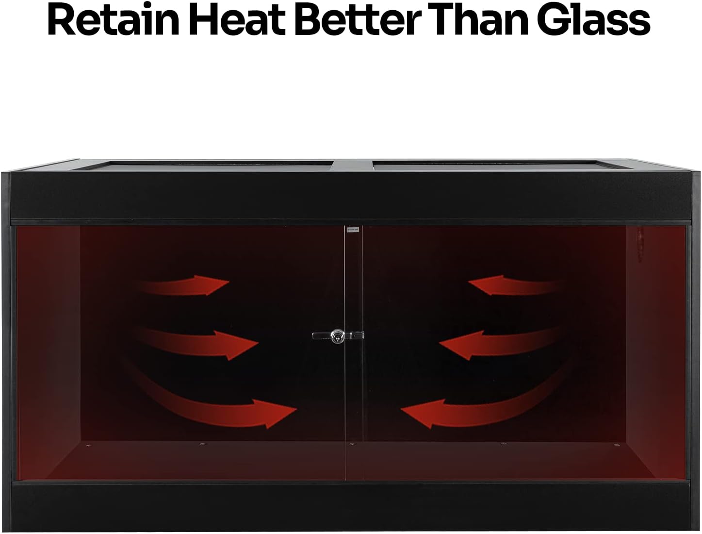 - 【Retain Heat Better Than Glass】Unlike glass or screen enclosures, the thickened wooden reptile enclosure provides excellent heat insulation, more in line with natural reptiles environment. Black and non-reflective surfaces reduce stress in your pets.