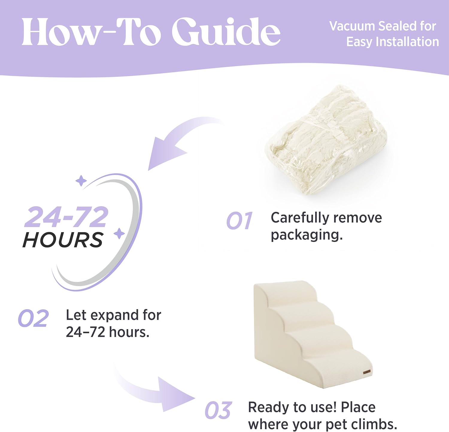 - Convenient & Easy to Use: Thoughtfully designed with your furry friend's needs in mind. A non-slip bottom featuring rubber dots ensures secure footing, while the handy built-in handle allows you to effortlessly move the ramp as needed. Note: the ramp arrives vacuum-compressed and requires no assembly. Simply give it 24-72 hours to fully expand and offer the utmost comfort for your pets.