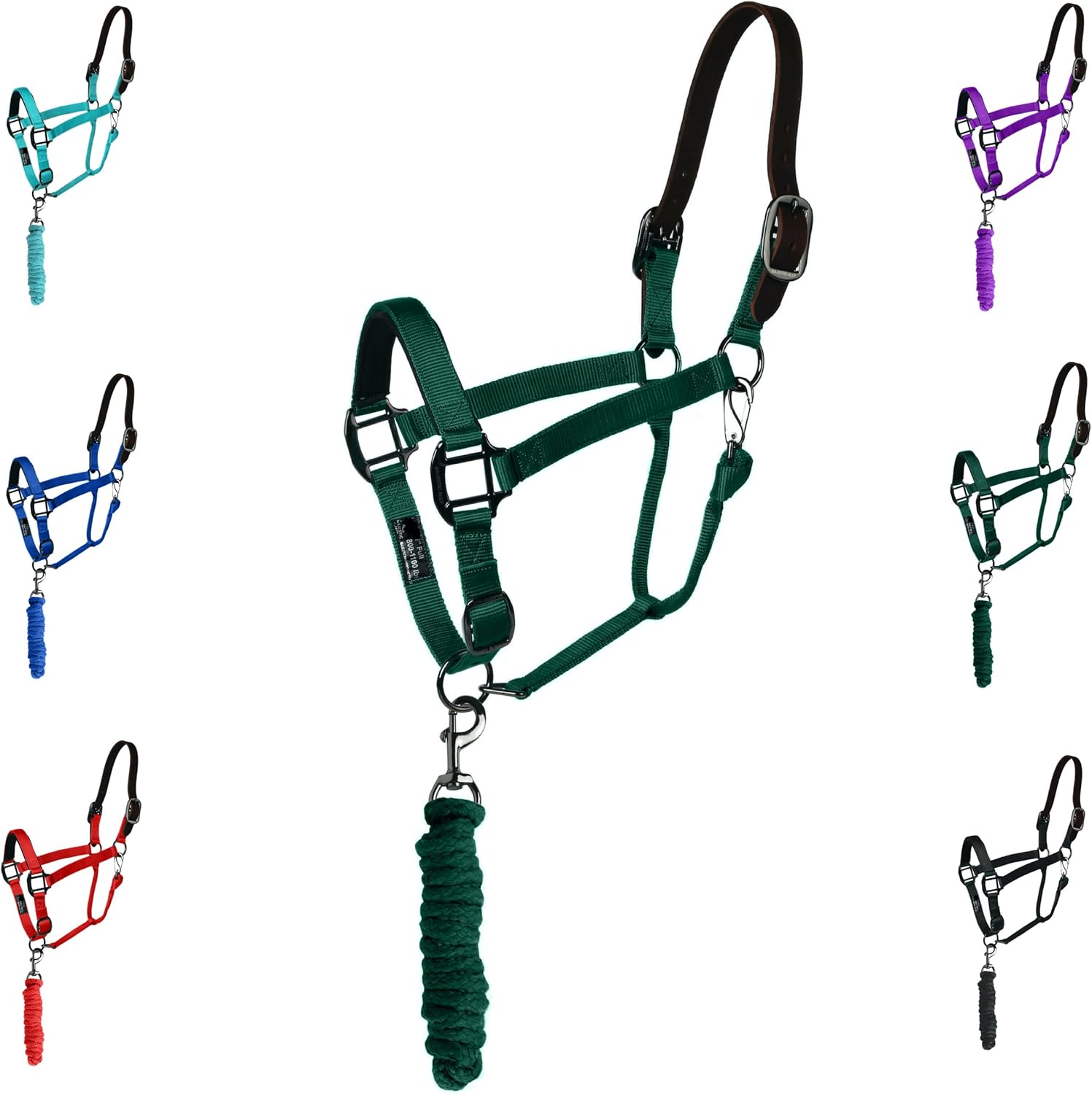 - INCLUDES A MATCHING LEAD ROPE - Our halters come with a matching 10’ polyester lead rope.