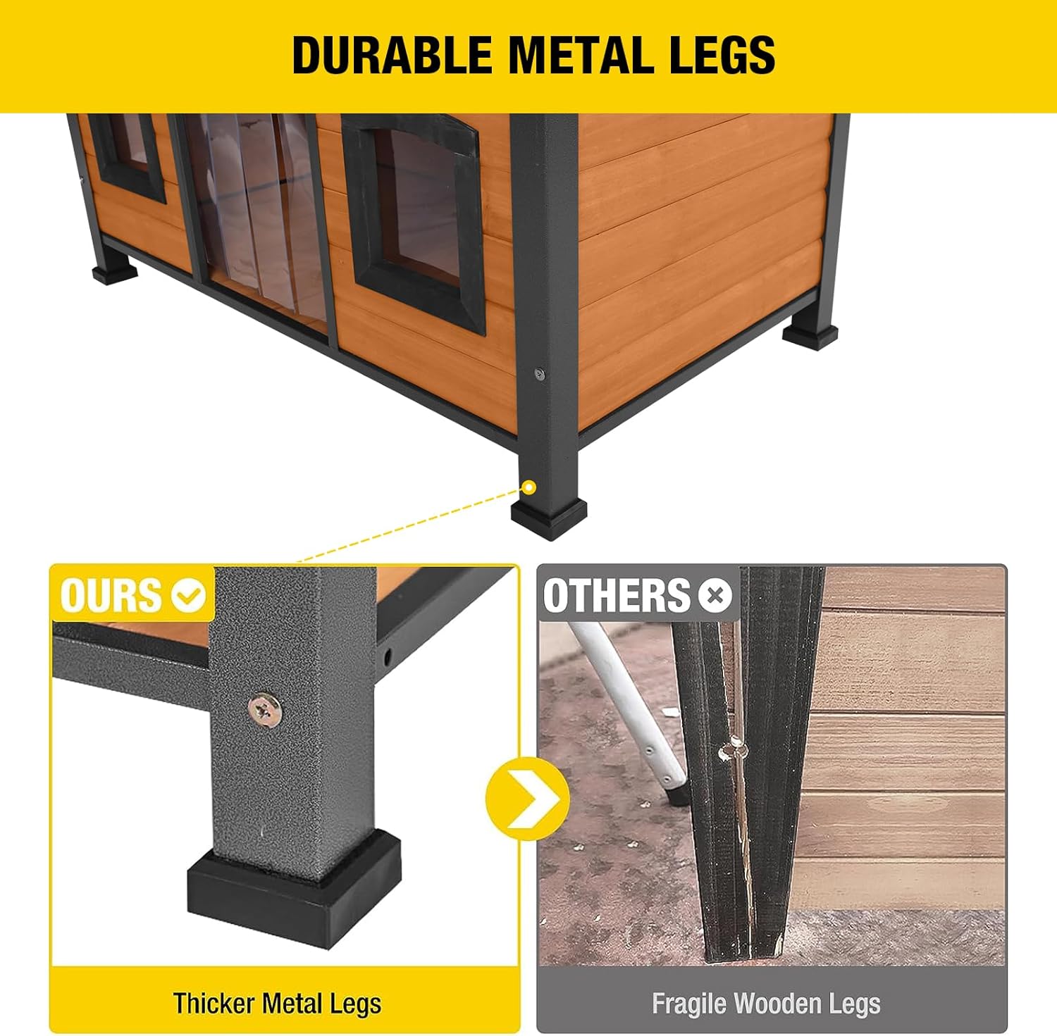 - Strong & Durable: Strong & sturdy for long-lasting protection. Our dog house Combine with solid wood and UNIQUE all-around stronger iron frame, prevent destruction and chewing from animals.