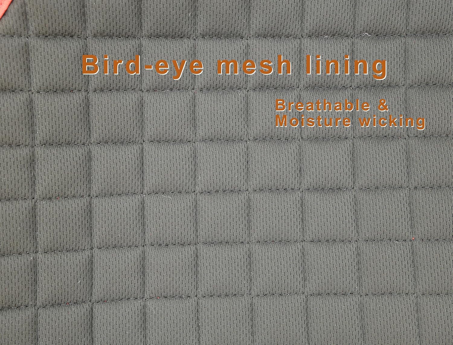 • The bird-eye mesh cloth as lining effectively controls heat and sweat, efficiently wicking away moisture. The pique surface helps keep it from slipping.