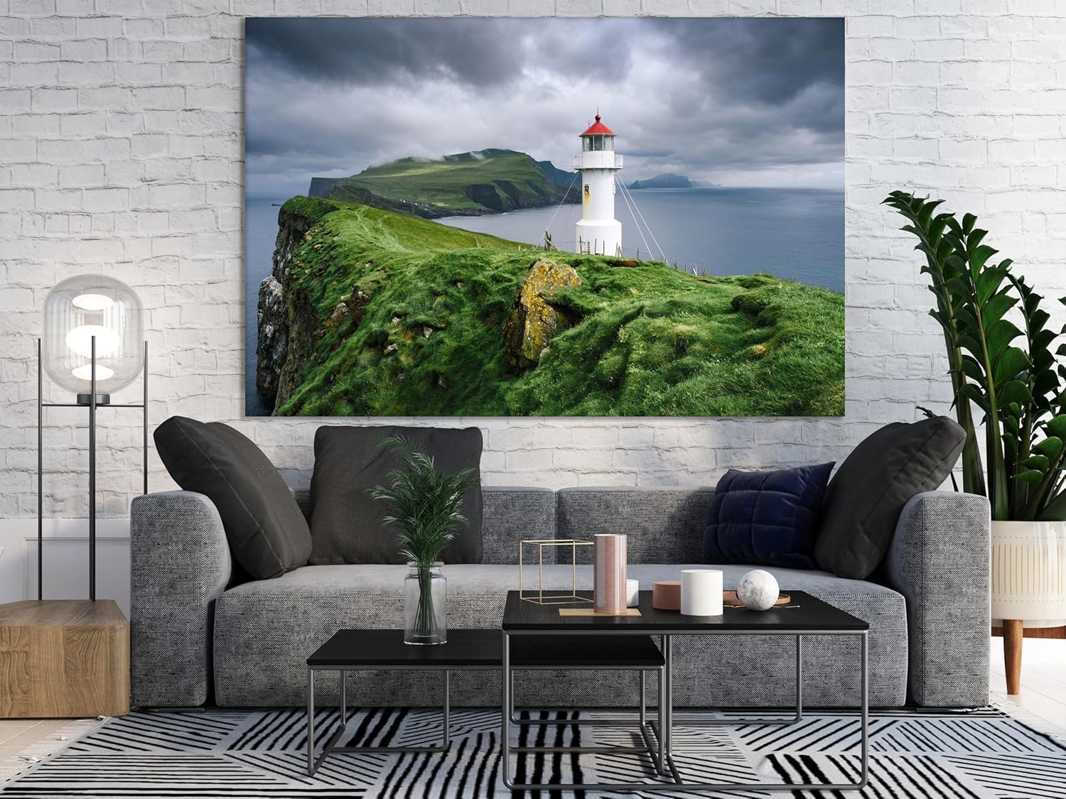 Nature Wall Art Prints - Ocean Forest Mountain Lake Canvas Landscapes - Small to Extra Large Living Room Bedroom Kitchen Bathroom Décor (Stormy Sky Lighthouse, 35L" x 53W")