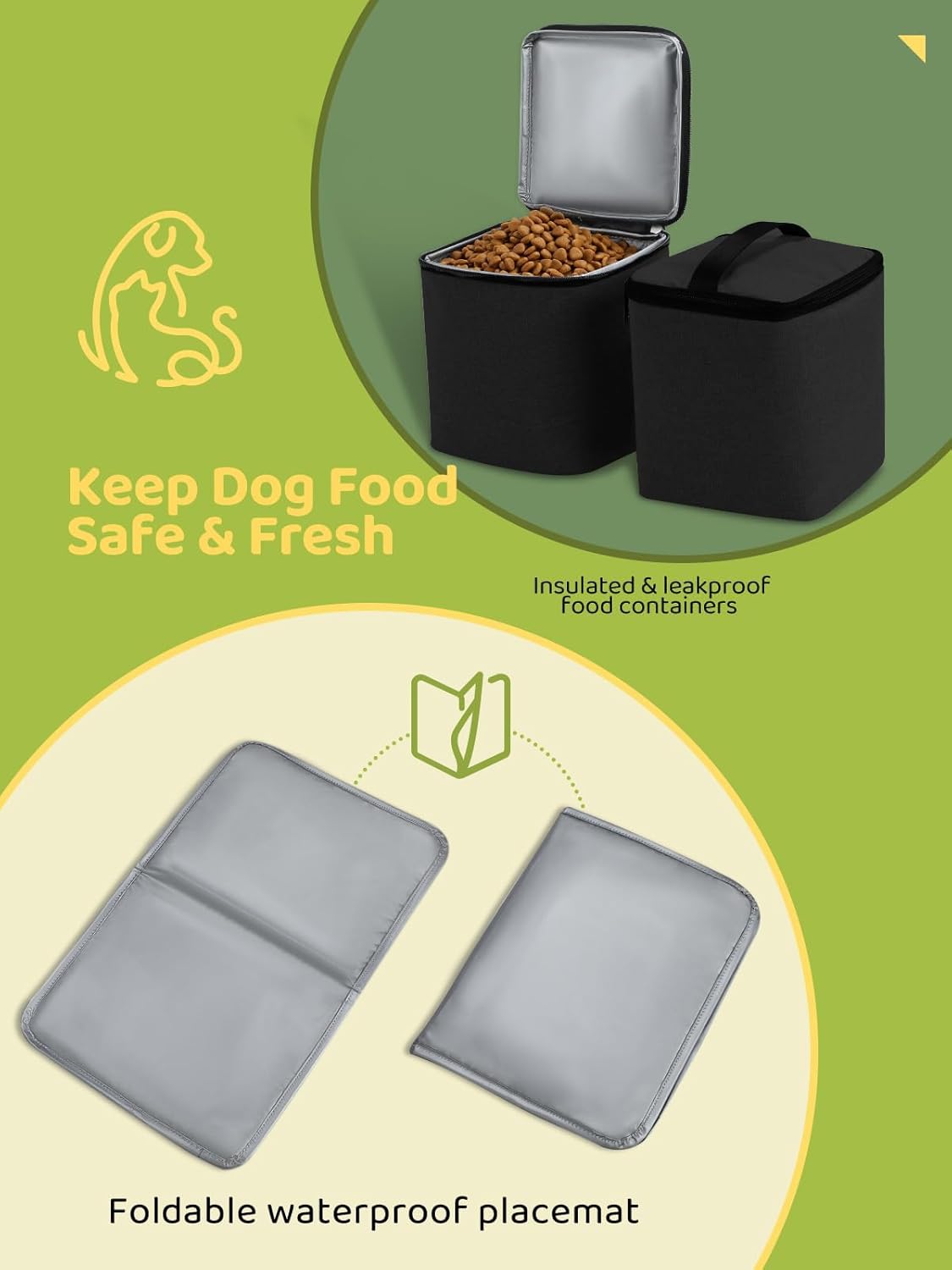- Keep Dog Food Fresh: Two large dog food containers can hold up to a week’s worth of food depending on the dog. And the food carriers are fully insulated and leak-proof, keeping your pooch’s food/treats fresh and safe no matter where you go, on a hillside or the beach.