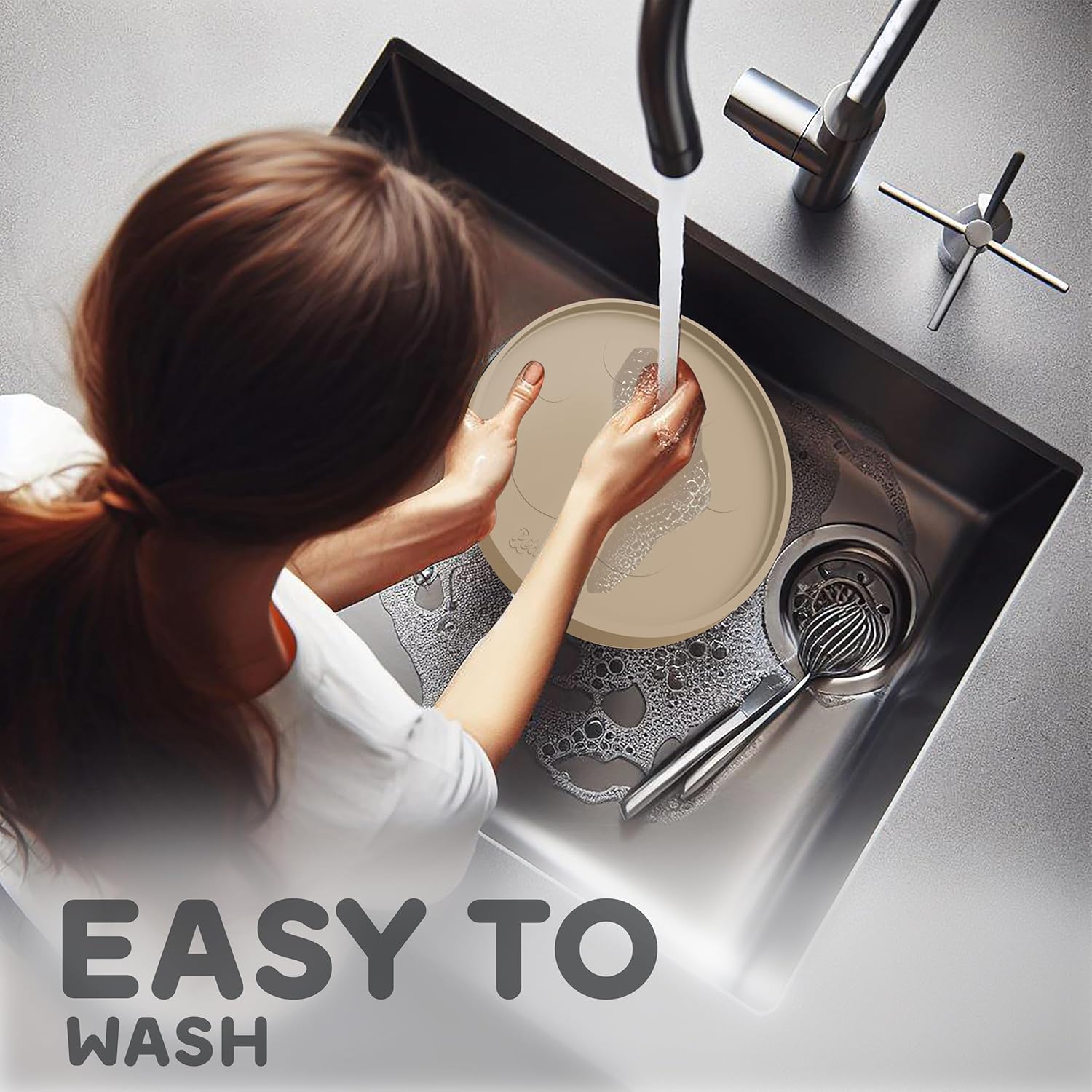 - RAISED EDGES KEEP THE MESSES WHERE IT BELONGS: Keep Your Home Spotless & Enjoy Hassle-Free Dinnertime with Your Furry Friend! Whether they eat with enthusiasm or like to play with their food, our 10" Round dog food mats for floors waterproof are specially designed to reduce cleanup time for both wet and dry foods. Treat yourself and your furry pal to a cleaner, more enjoyable mealtime experience.
