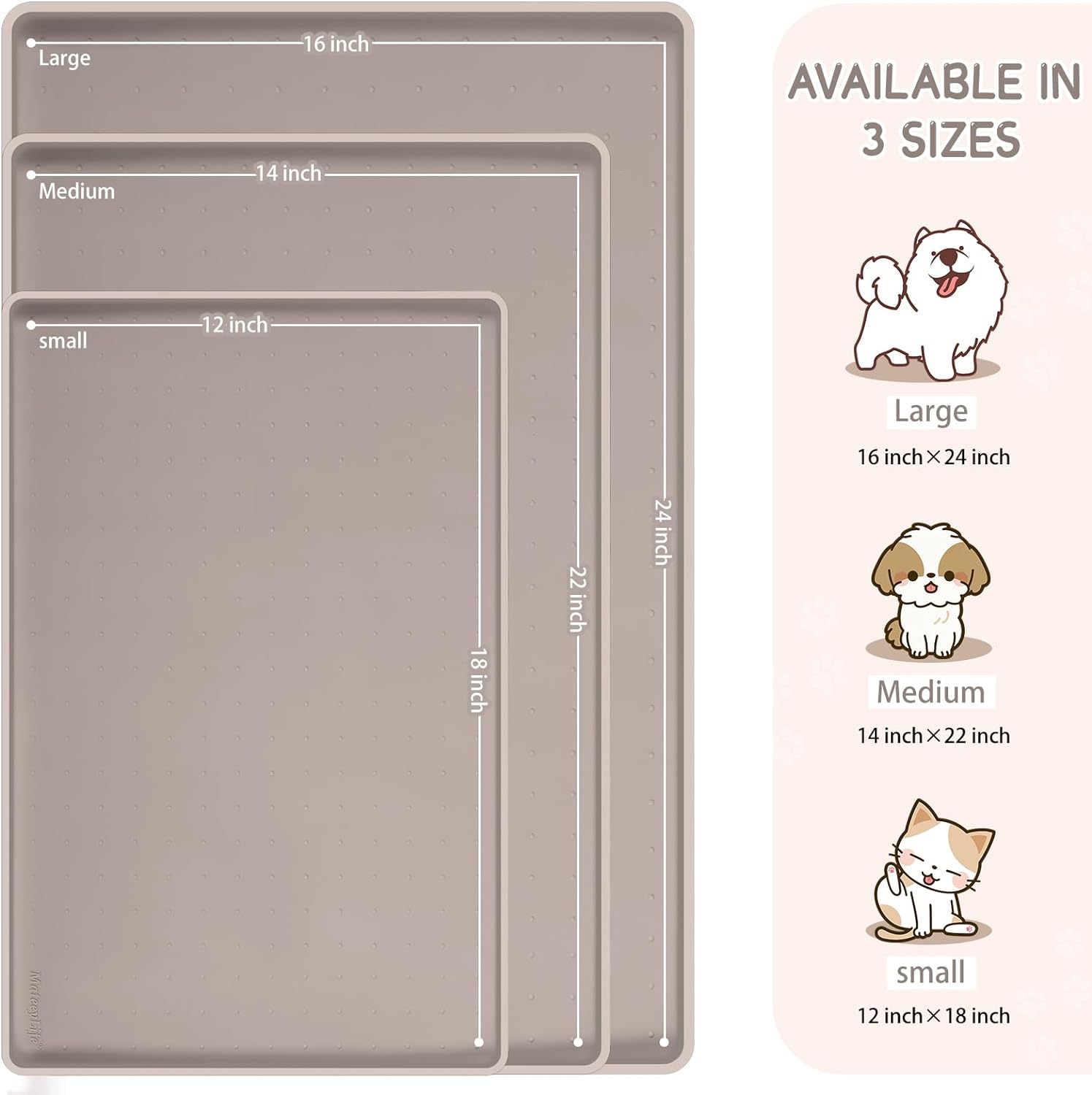 - Multiple Sizes & After-Sales: Service Our cat feeding mat and dog dish mats for floors waterproof come in 3 sizes and 8 colors, making them ideal for pets of all sizes. The dog food trays for floors can also be used as a rubber shoe mat tray, under sink mat, under sink tray, cat litter mat and litter box mat. If you have a chewer, please supervise him/her while using the cat bowl mat and dog bowl mat waterproof. Any issues, please feel free to contact us