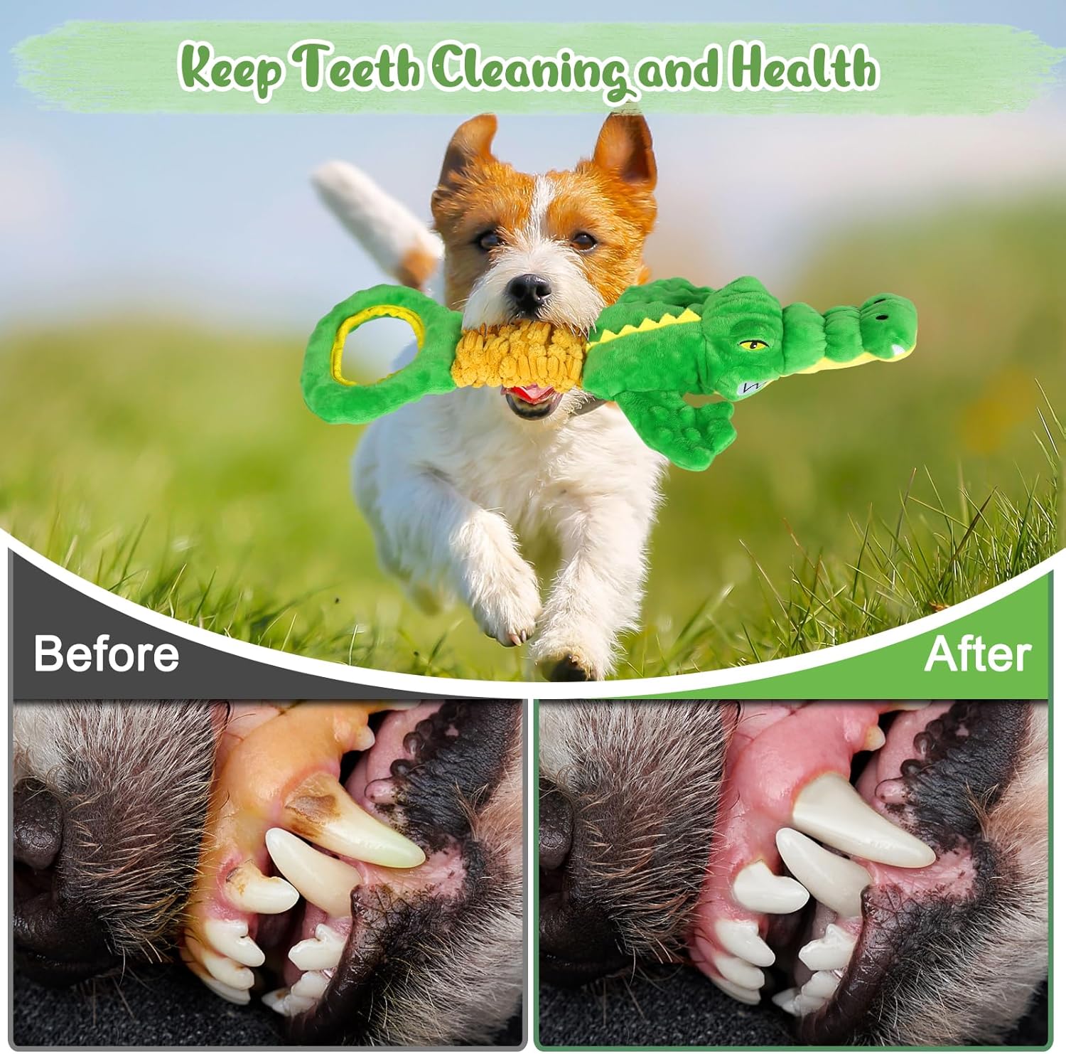 - Large Size Dog Chew Toy: With a total length of 17 inches and a retractable body section that stretches up to 23 inches, this crocodile-shaped plush toy is perfect for tugging, chewing, and close play, providing endless moments of joy